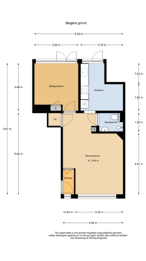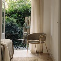 Also at the rear of the house is the spacious bedroom, with French doors towards the garden. This room of about 8m² offers enough space for a large wardrobe and double bed. The bathroom is adjacent to the kitchen and features a comfortable shower, toilet, washbasin and towel radiator.