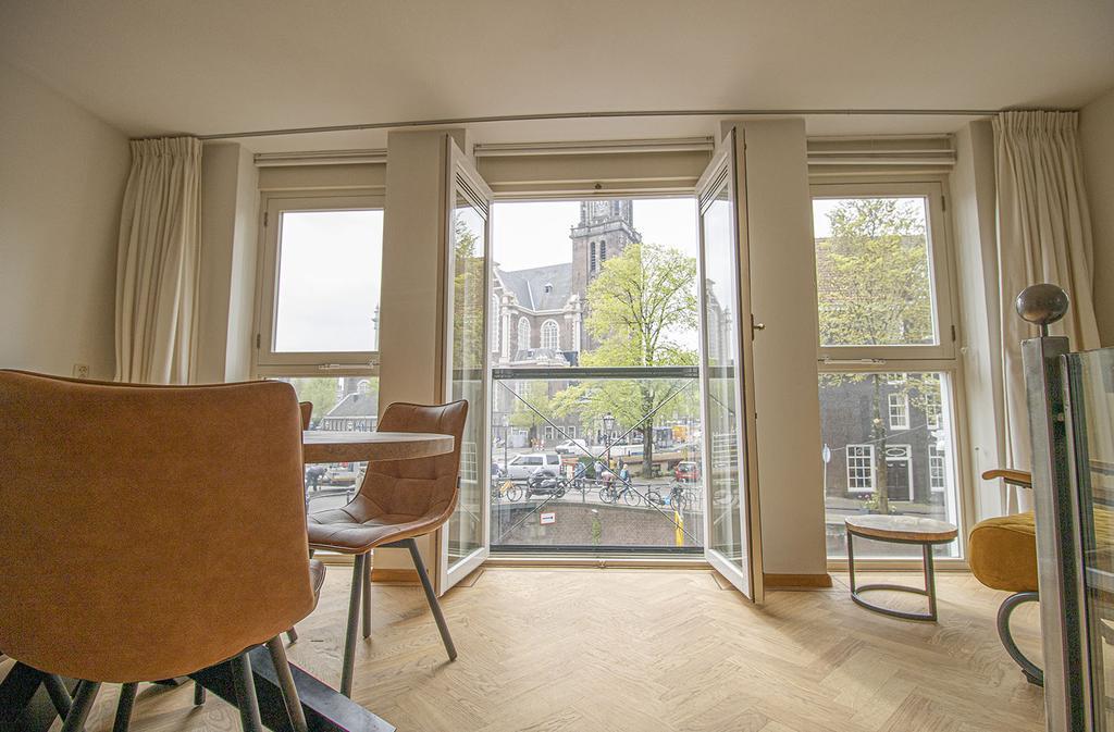 This authentic and fully furnished 1 bedroom apartment is located in a prime location in the center of Amsterdam. The spacious living room is located on the second floor. This offers a magnificent view of the canal and the Westerkerk and has a beautiful wooden herringbone floor and a cozy fireplace. The living-in kitchen is accessible via the stairs, which is fully equipped. There is also a toilet on this floor. In the basement is the bedroom with adjacent bathroom with a double shower.