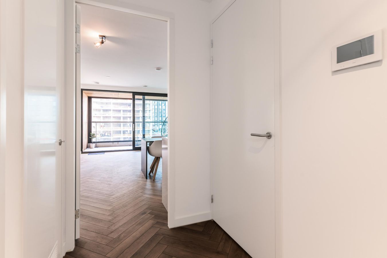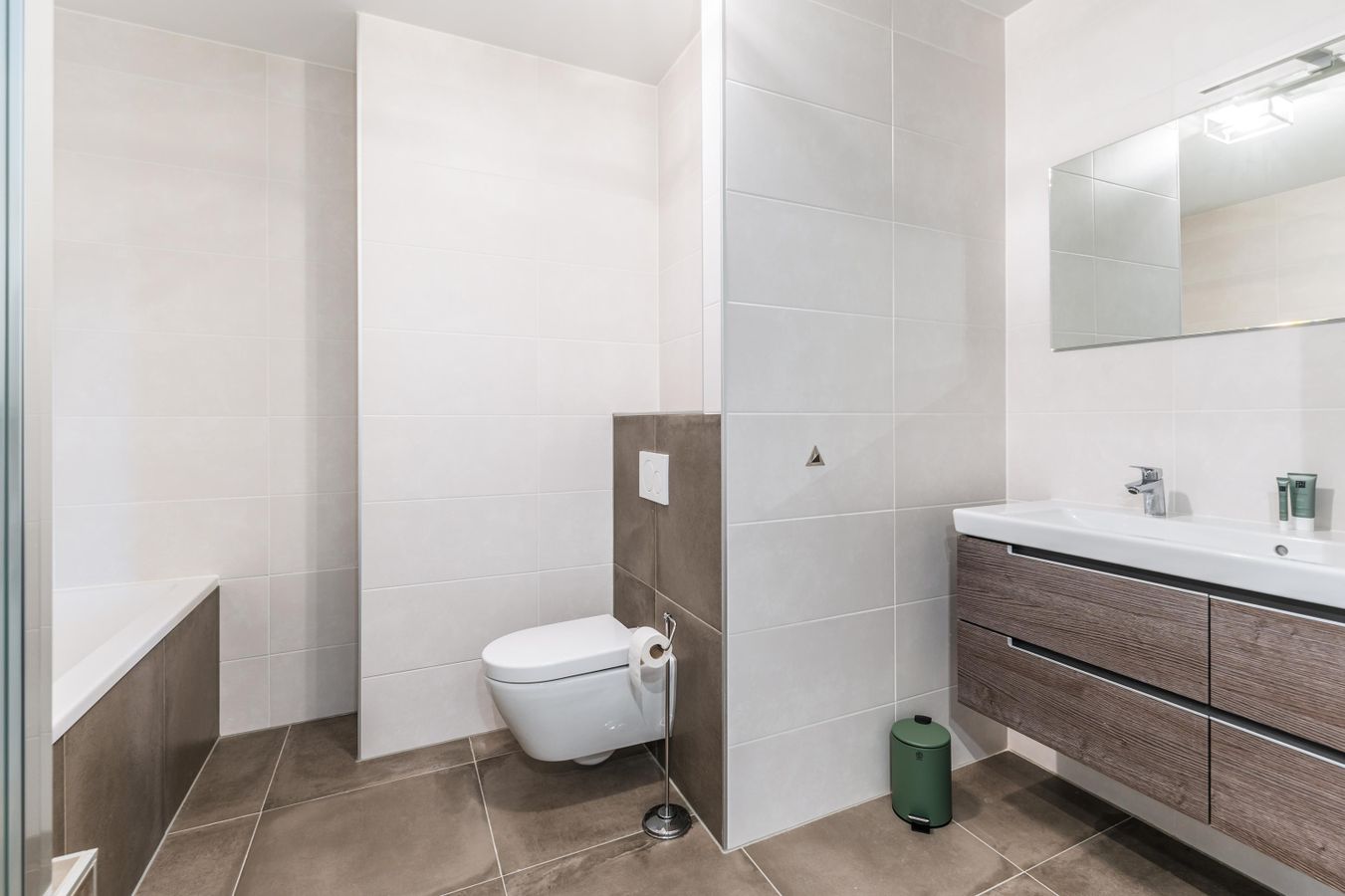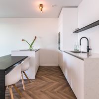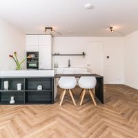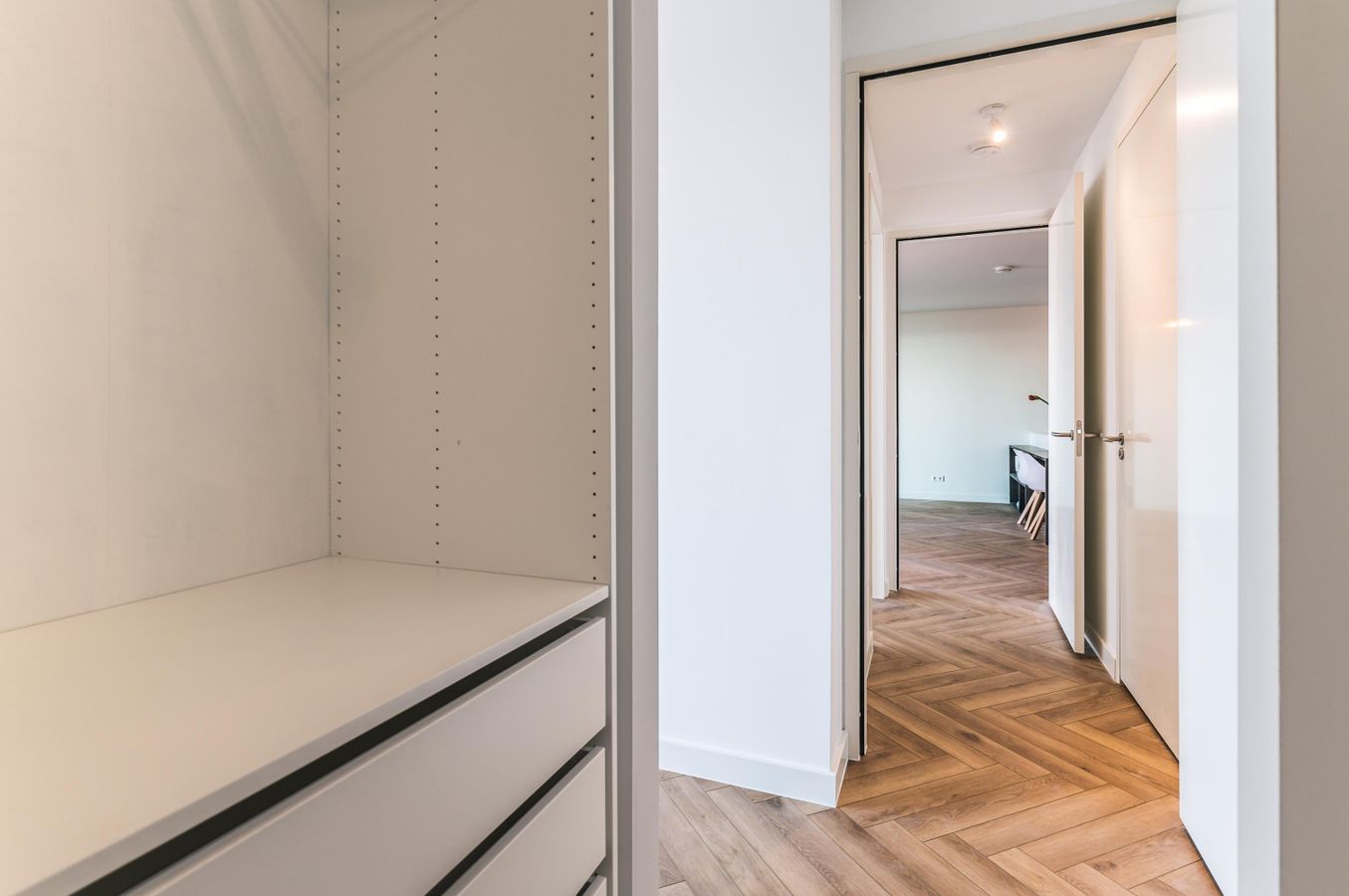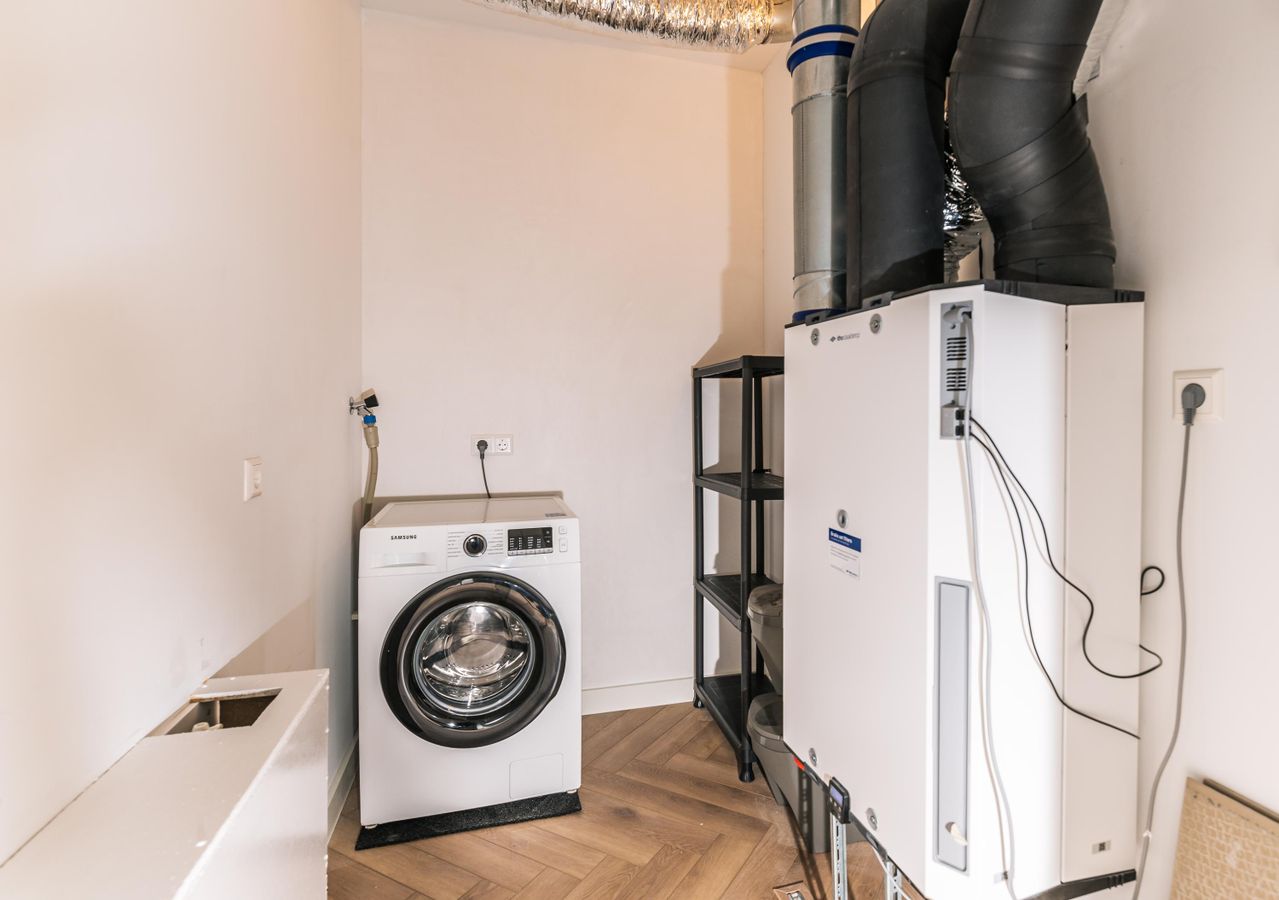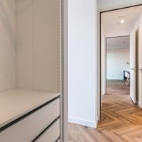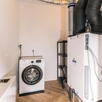 The apartment has two bedrooms. The master bedroom includes a built-in wardrobe. The second bedroom is ideal as a guest room or home office and offers beautiful views over the IJ. The luxurious bathroom is finished to a high standard and equipped with large tiles, a walk-in shower, bathtub, double sink, and toilet. Additionally, there is a separate laundry room with a new washing machine and dryer, which can also serve as additional storage space.