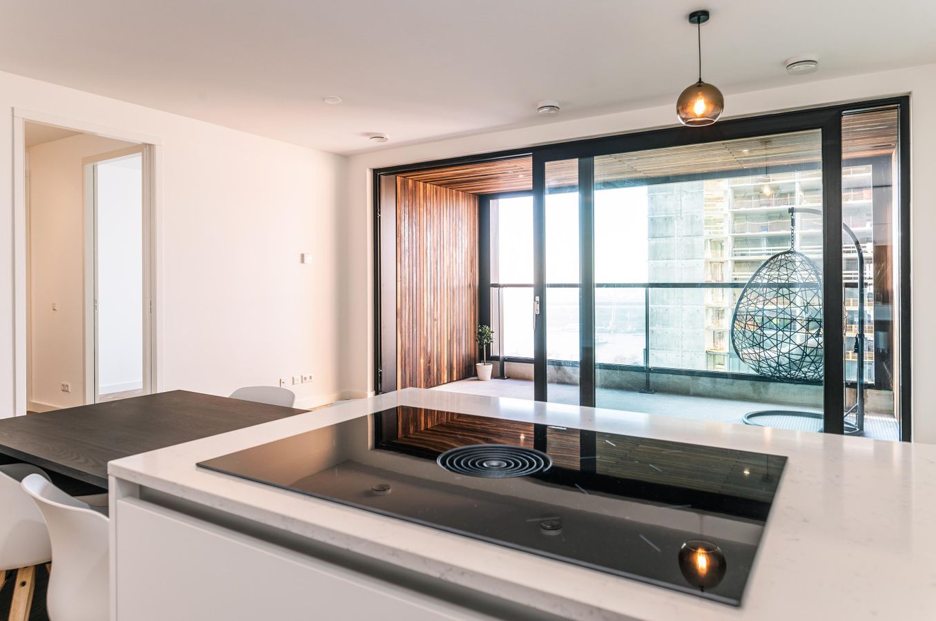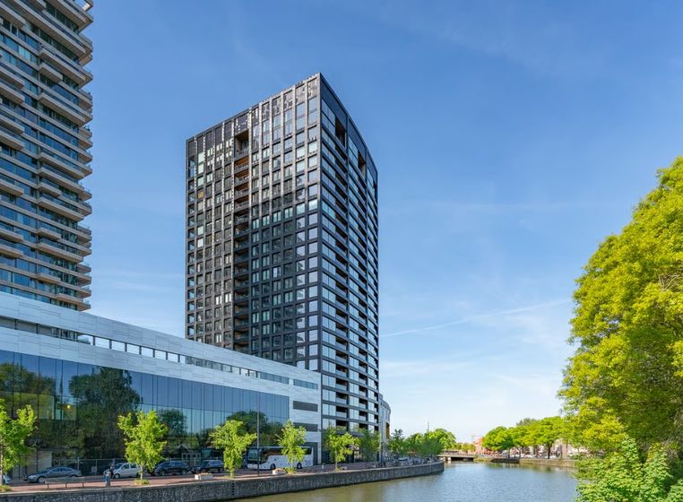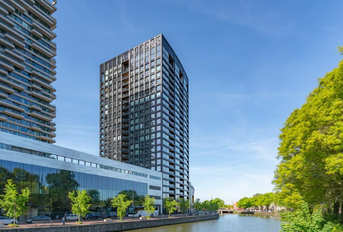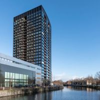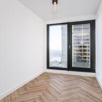 Located on the 15th floor of the striking residential tower BOLD, this beautiful, spacious, and modern two-bedroom apartment offers breathtaking views over the IJ and Amsterdam’s city center. The tower, situated directly behind Central Station, forms part of the city’s iconic skyline and is characterized by its powerful, high-tech design. Thanks to the innovative use of solar panels, the building is also exceptionally energy-efficient.