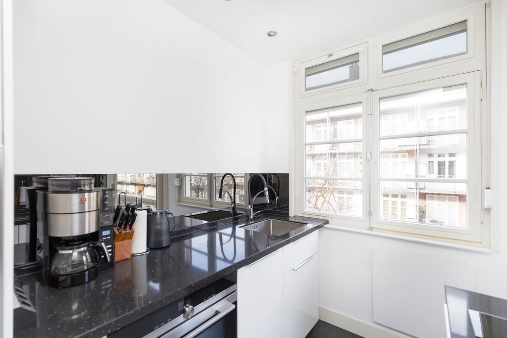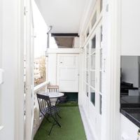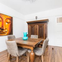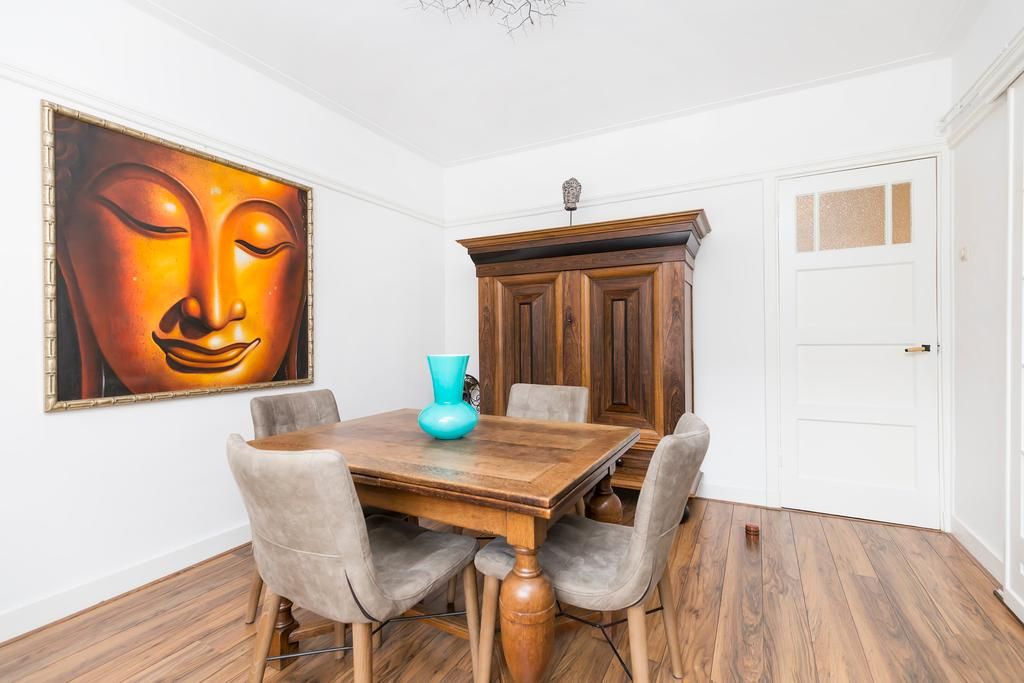 The apartment is located on the 2nd floor and has wooden floors. The living room is located at the front. Here you will find a luxurious sitting area with a flat-screen TV. Authentic sliding doors lead to the dining room. The modern kitchen is located at the rear and is equipped with new built-in appliances (Siemens) and an induction hob. The bedroom is also located at the rear. Here you will find a double bed and a spacious wardrobe. The bedroom leads to the west-facing balcony. The bathroom is luxuriously finished and equipped with a shower and sink. There is a separate toilet in the hall.