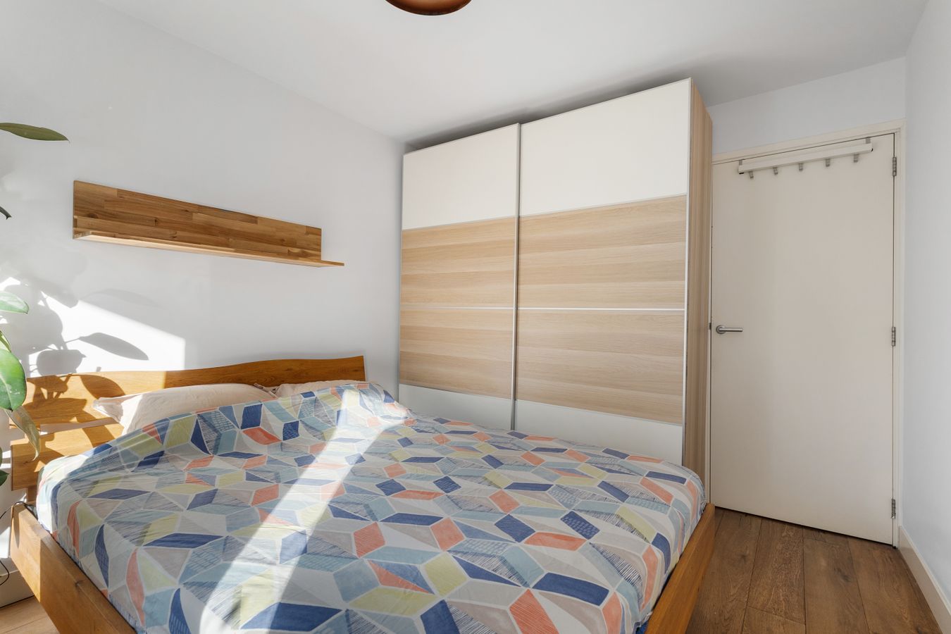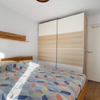The entrance gives access to the bright living room, which is tastefully decorated and has beautiful wooden flooring. The spacious open kitchen includes a gas stove, oven, fridge-freezer and ample storage space.