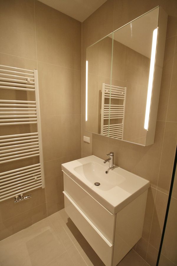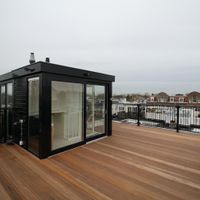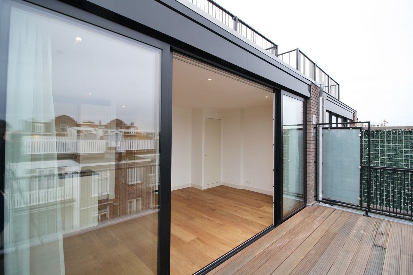 At the front of the property are two well-proportioned bedrooms. The stylish and modern bathroom is fitted with a spacious walk-in shower and a washbasin. e apartment is equipped with underfloor heating and is highly energy-efficient, with an energy label B. On the fifth floor, there is a (shared) roof terrace available for use.