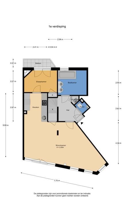 The balcony of approx. 6m2 can be accessed from the bedroom. The balcony offers enough space to take a seat and place two chairs and a table.