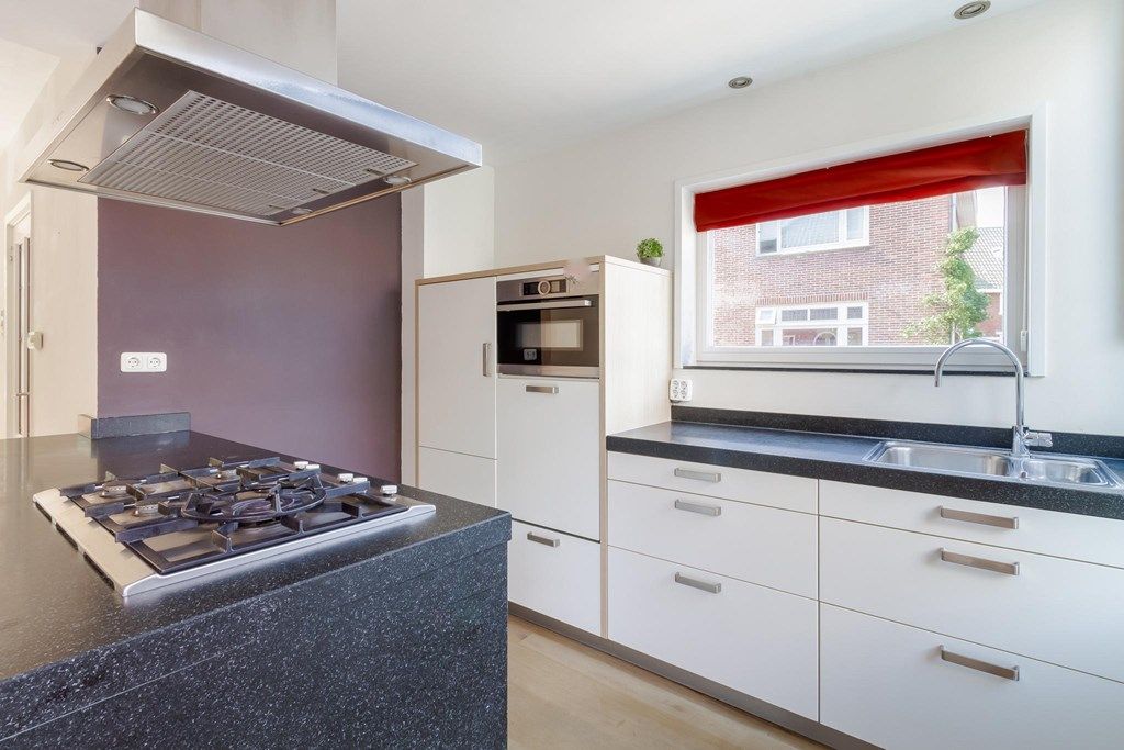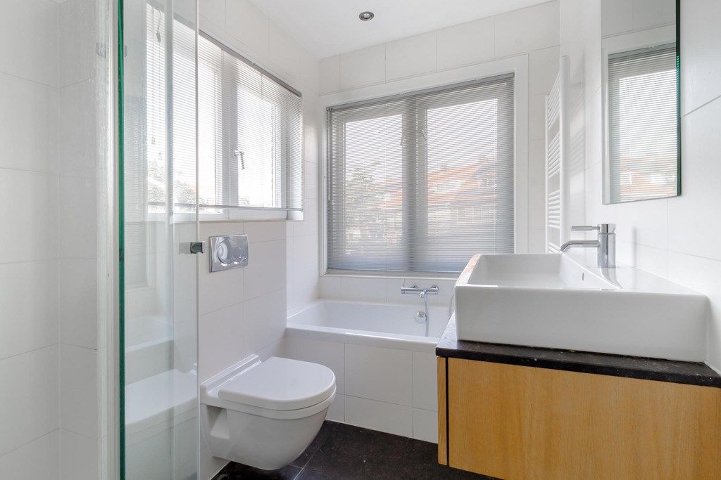 This modern kitchen is equipped with cooking island has a gas hob, fridge, freezer, oven and dishwasher. The sunny back garden can be reached through patio doors in the kitchen. The garden has a shed and is also accessible from the side of the house (street).