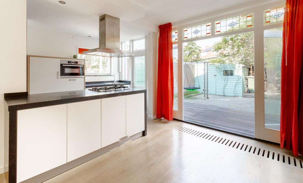 Beautiful corner house with spacious and sunny back garden. This property has 5 bedrooms. The entrance on the side of the house gives access to a spacious living room with open kitchen.