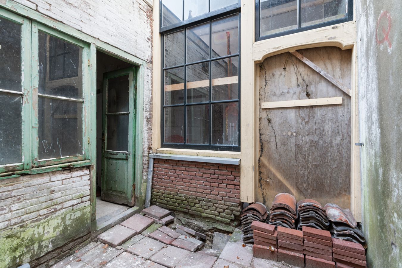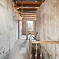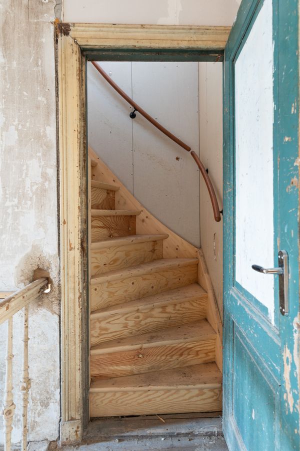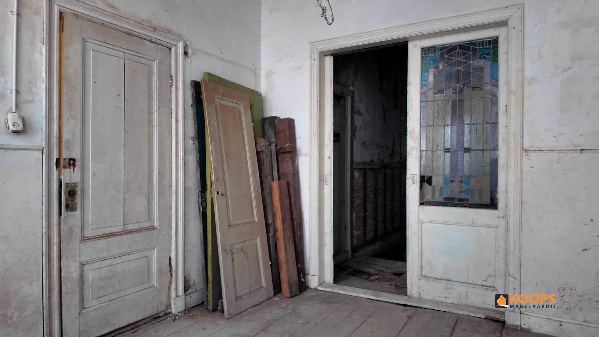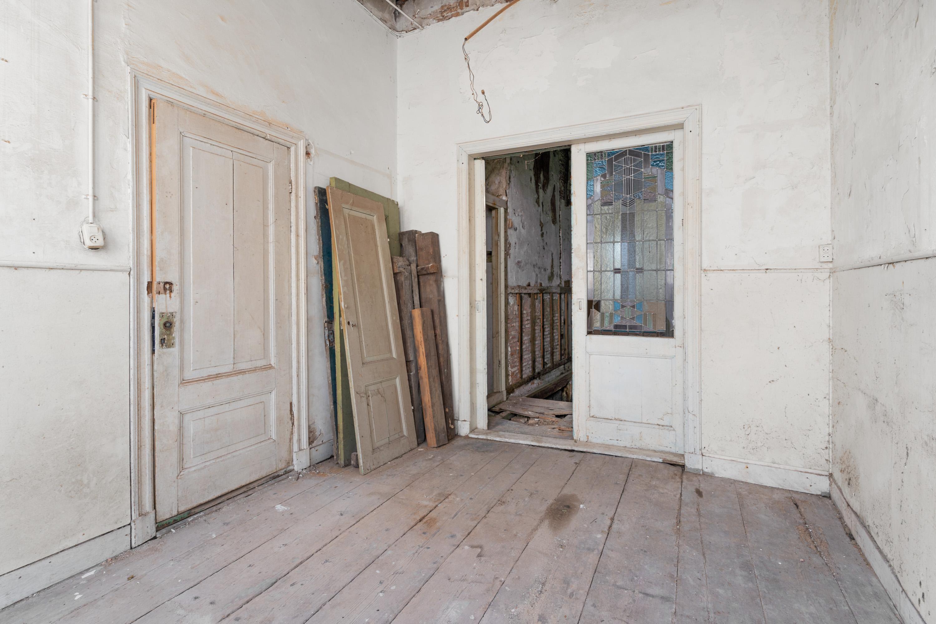 Behind the stately façade lies an impressive living space full of characteristic elements such as high ceilings, elegant window details, original features, and a generous layout typical of classic townhouses. Although the current condition demands renovation in virtually every aspect — from structure and installations to finishing — this also provides the opportunity to restore and modernise the home entirely to your own taste, within the framework of its monumental status.