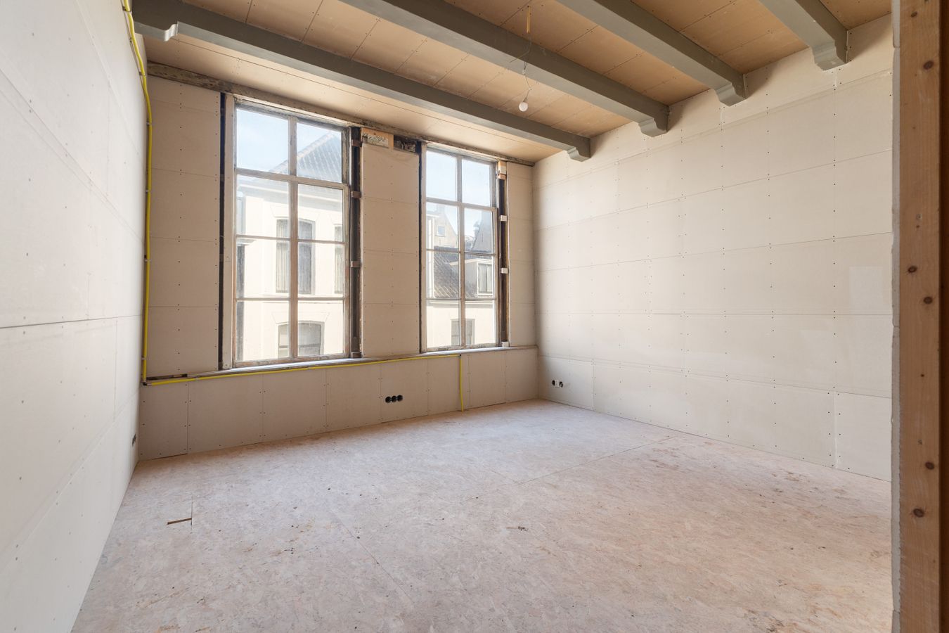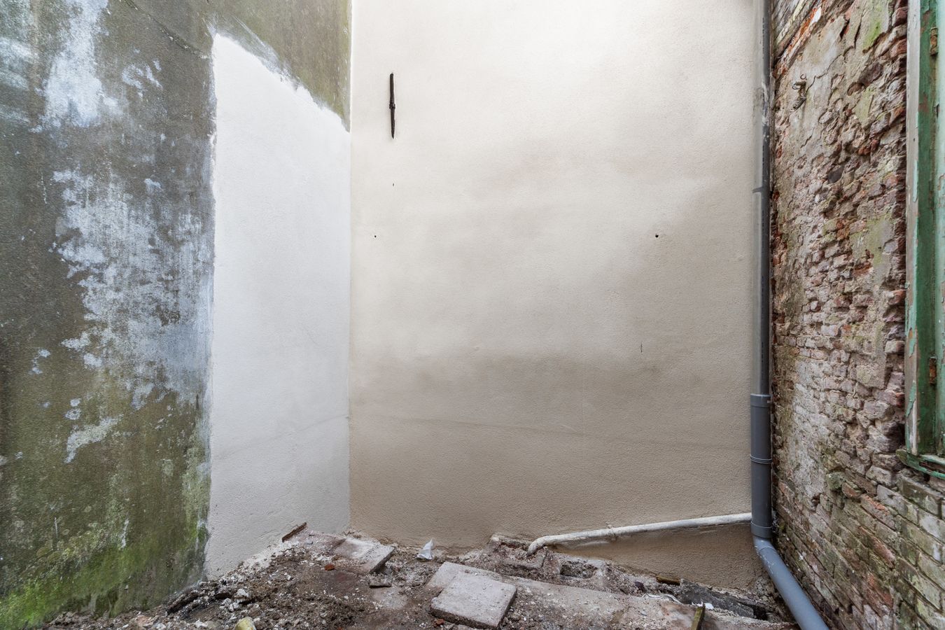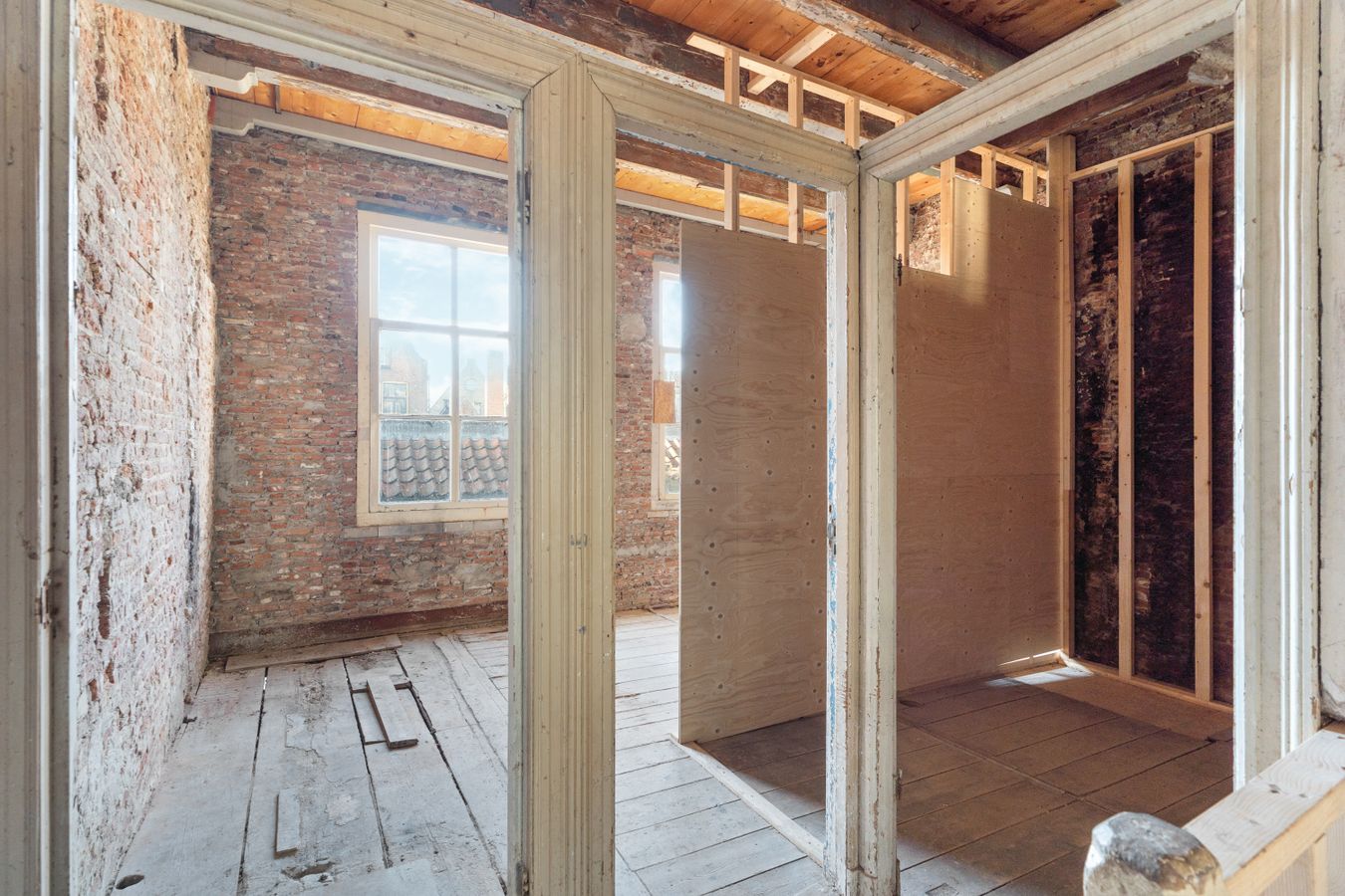 Behind the stately façade lies an impressive living space full of characteristic elements such as high ceilings, elegant window details, original features, and a generous layout typical of classic townhouses. Although the current condition demands renovation in virtually every aspect — from structure and installations to finishing — this also provides the opportunity to restore and modernise the home entirely to your own taste, within the framework of its monumental status.