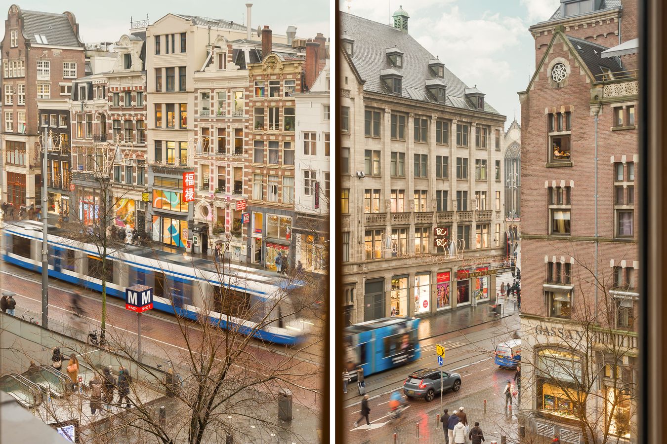 Accessibility is excellent. The Rokin metro stop on the North/South line is practically on your doorstep, putting you at Zuid Station or Central Station within minutes. Trams and buses stop around the corner, and there is a direct connection to Schiphol Airport.