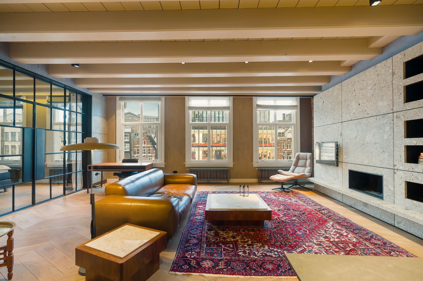 This beautiful unfurnished loft apartment of no less than 158m² is located on the bustling Rokin, right in the heart of Amsterdam. The apartment exudes atmosphere and is decorated with a sleek and contemporary interior, with the characteristic stone walls providing a real city atmosphere. With a spacious living room, luxurious open kitchen and a spacious bathroom, this apartment is unique in its kind.
