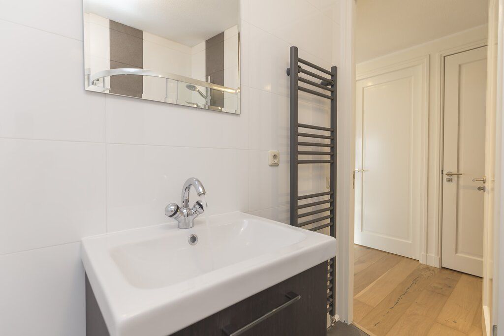 A wonderfully spacious sitting area and a stylish kitchen, which provides all the necessities, including a hob, oven and refrigerator. The apartment is very light because of the many windows. Next to the kitchen is a lovely balcony overlooking a pleasant green square. The master bedroom has a double bed and wardrobes. The second bedroom offers a cozy space for guests with a sofa bed or can be converted into an office or study. The bathroom closes off the interior with a sink, bath and shower. There is also a separate toilet with hand basin. The property is located just outside the city's central ring road, minutes from the A10, making it an excellent choice for car owners, especially with the added bonus of a private parking garage (optional).