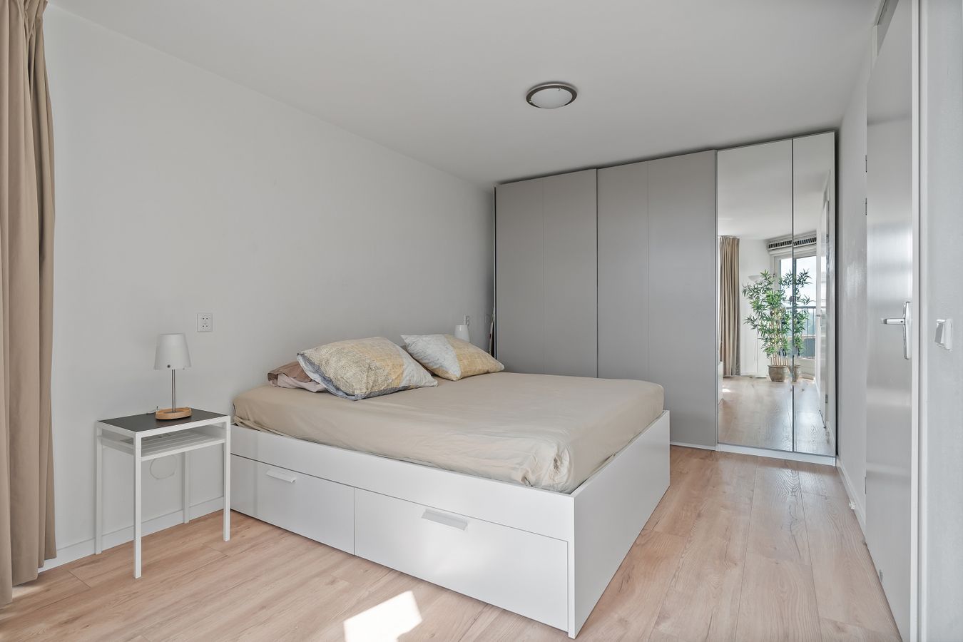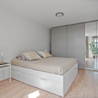 The master bedroom is located on the right side of the apartment and covers ca. 15m². This room has a large wardrobe and ample space for a double bed. The balcony can be accessed from both this room and the living room.