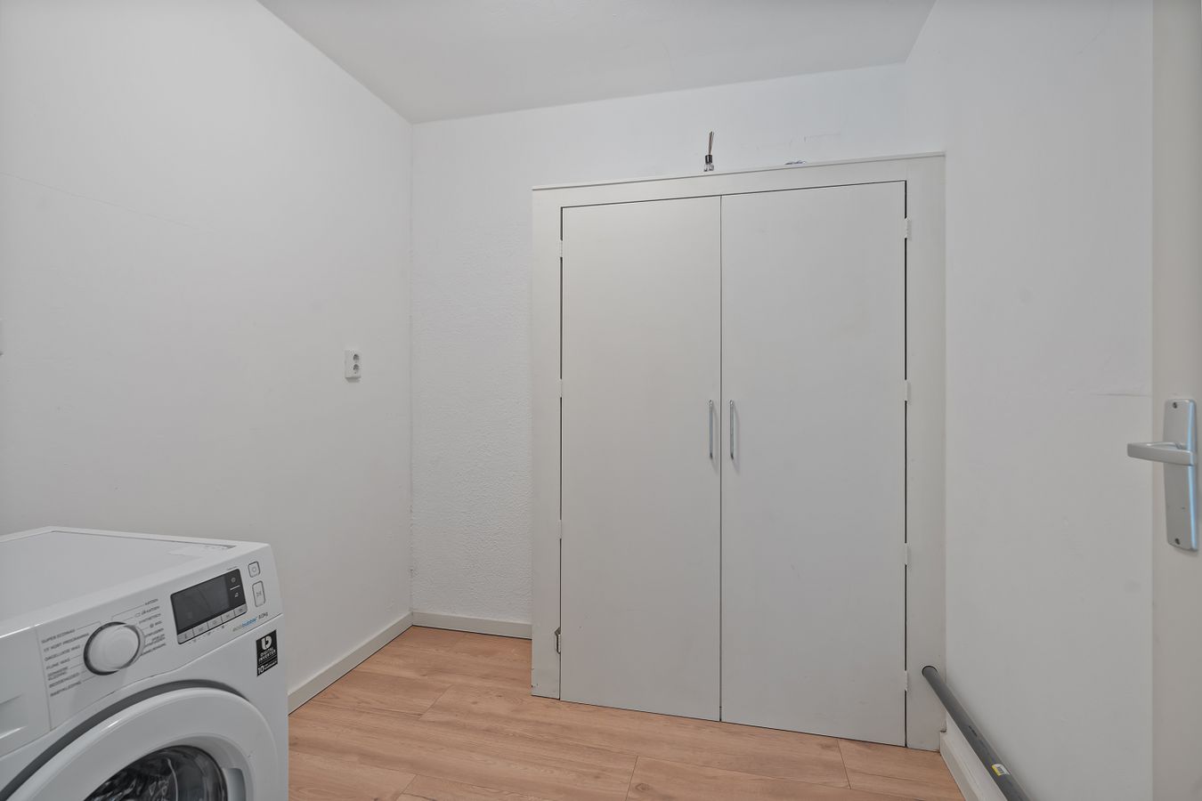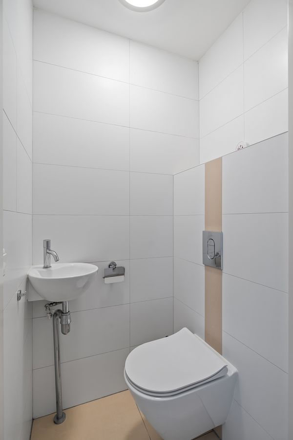 On the left side of the apartment, there is a spacious utility room where a washing machine and dryer can be connected. In addition, the apartment has a separate toilet in the hall.
