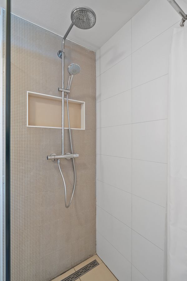 The second bedroom is located next to the master bedroom and covers ca. 7m². Opposite this room is the bathroom, fully equipped with a bathtub and walk-in shower, which were installed in 2018.