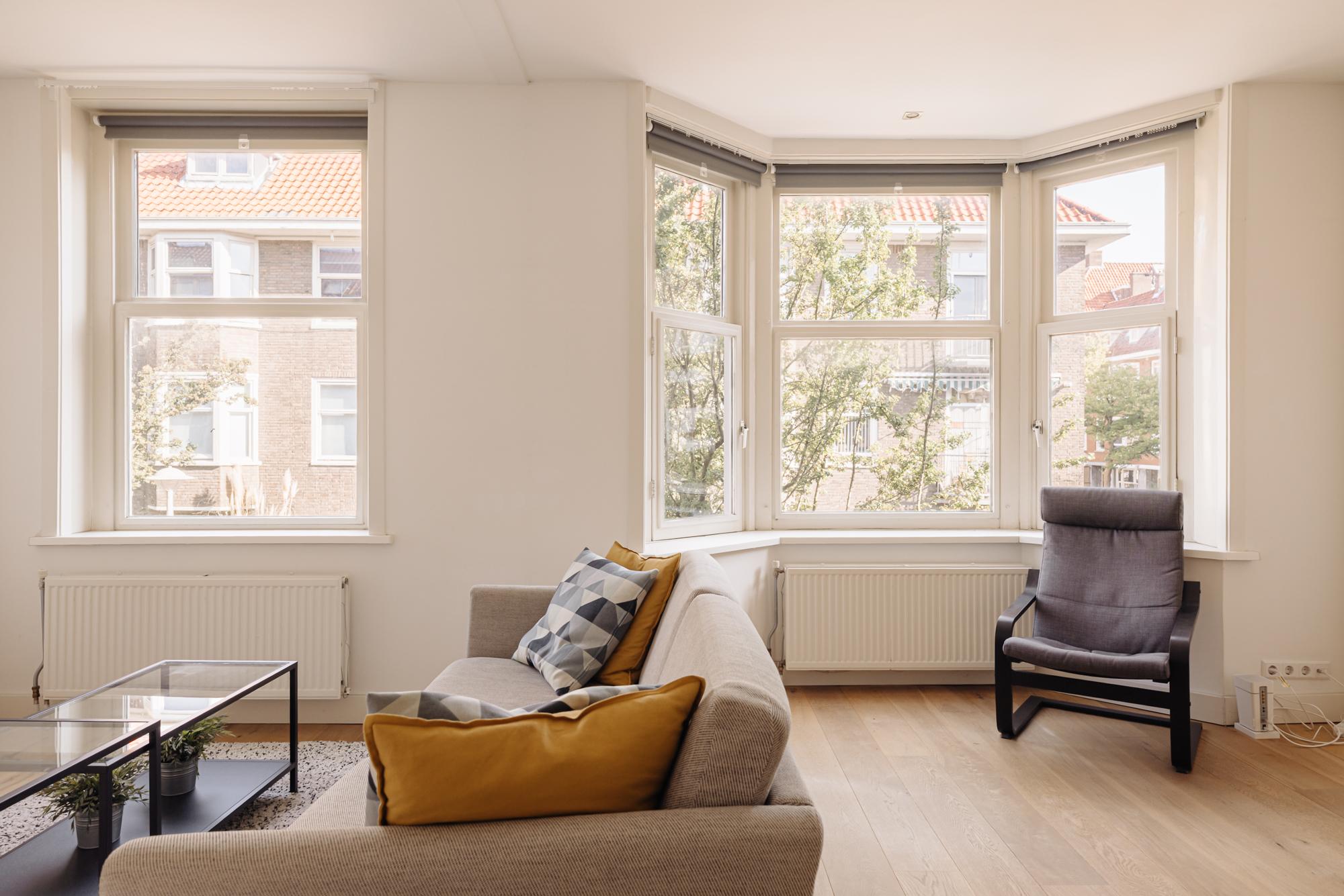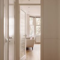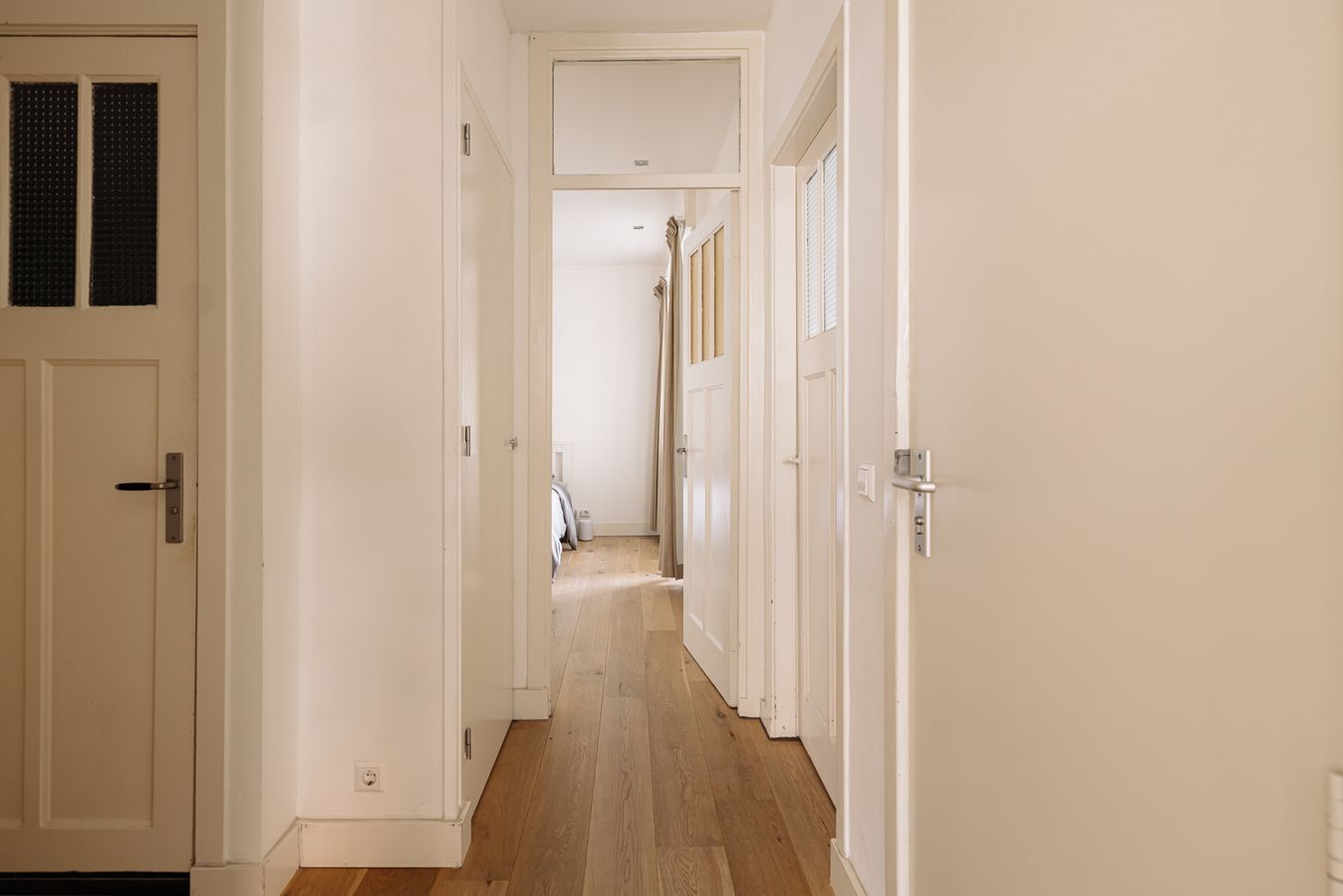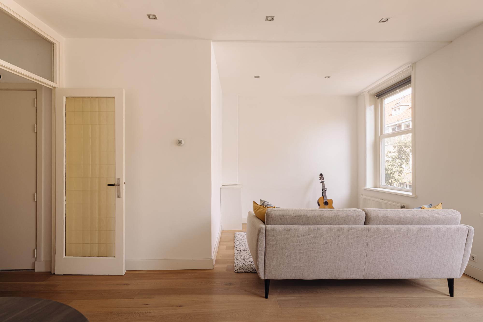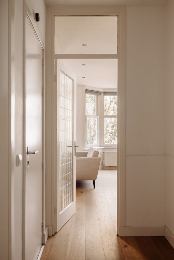 The central entrance to the flat is located on the quiet Katwijkstraat, a short street that connects Woestduinstraat and Westlandgracht. The front door of the flat is on the first floor. You enter the entrance hall, which provides access to all rooms.