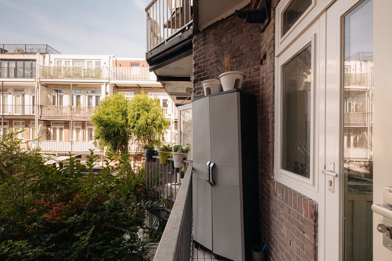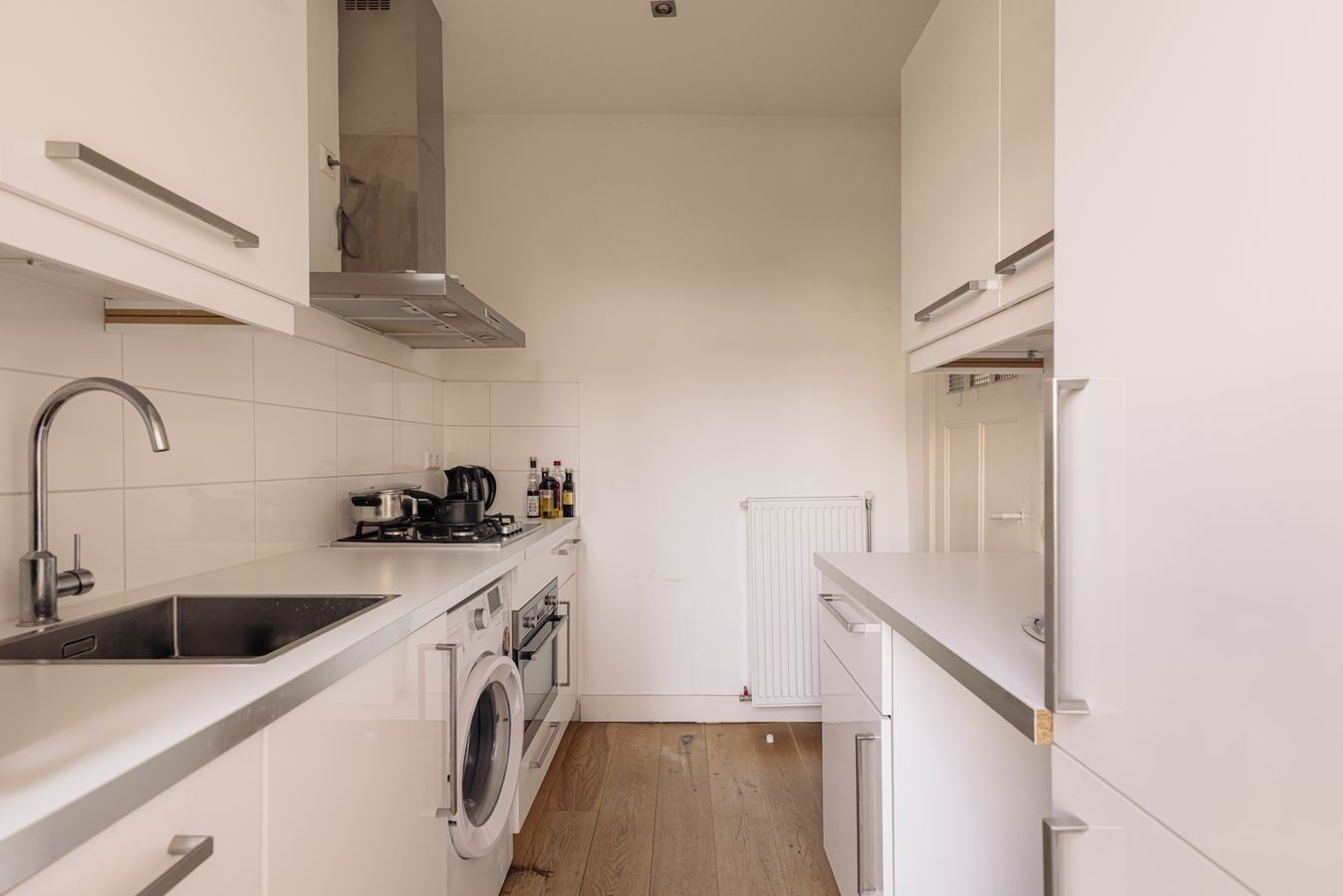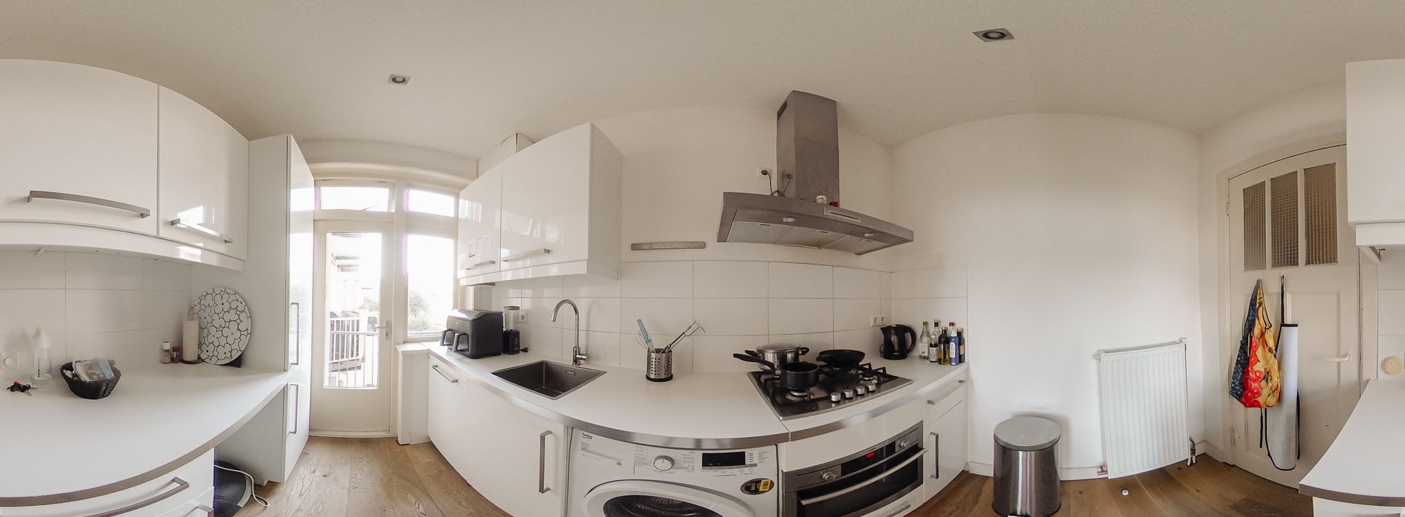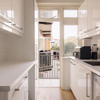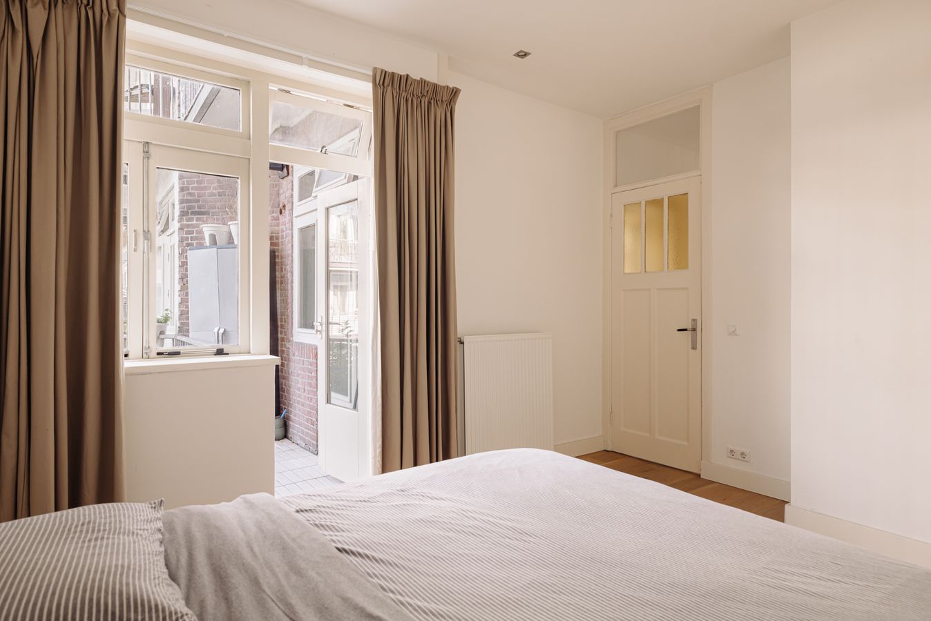 The central entrance to the flat is located on the quiet Katwijkstraat, a short street that connects Woestduinstraat and Westlandgracht. The front door of the flat is on the first floor. You enter the entrance hall, which provides access to all rooms.