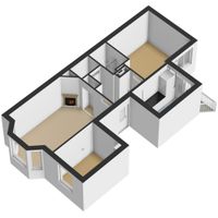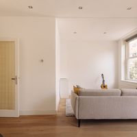 At the front of the flat is the spacious, L-shaped living room. This room is characterised by lots of natural light, partly due to the charming bay window. The high ceilings provide space for large windows, making the living room a light and comfortable space. A second bedroom of approx. 6m² can easily be created in this space by placing a wall. The second floor plan shows how this would work.