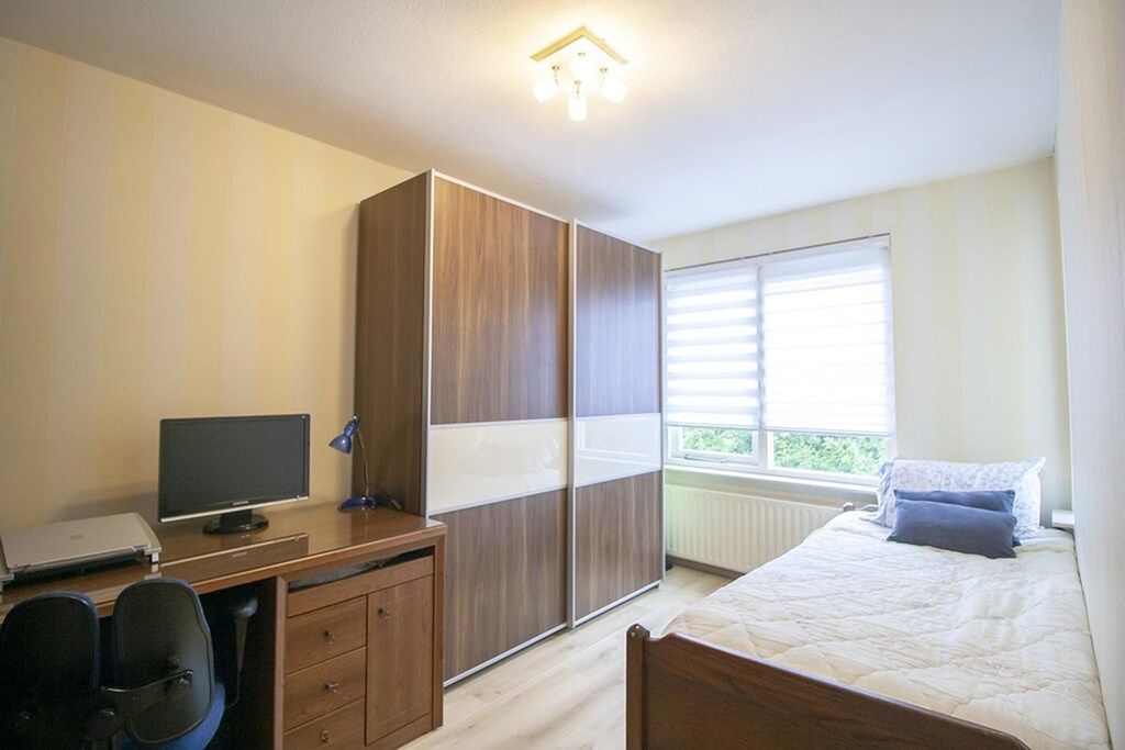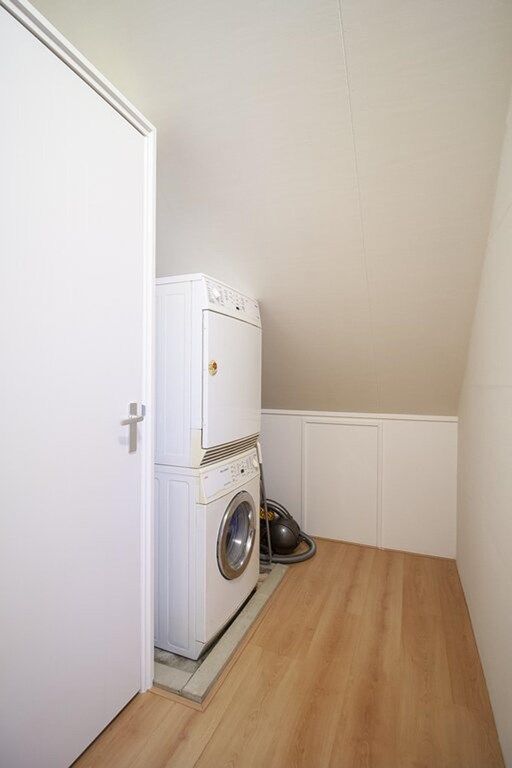 The first floor can be reached via the stairs in the hall. This floor has 3 bedrooms and a bathroom. The bathroom has a shower cabin, bath, sink and toilet. The master bedroom is located at the rear and has a double bed and a spacious wardrobe. The second bedroom is delivered empty and the third bedroom has a desk, single bed and big wardrobe. On the top floor there is a spacious bedroom. The washingmachine and dryer are also located on this floor.