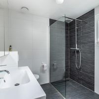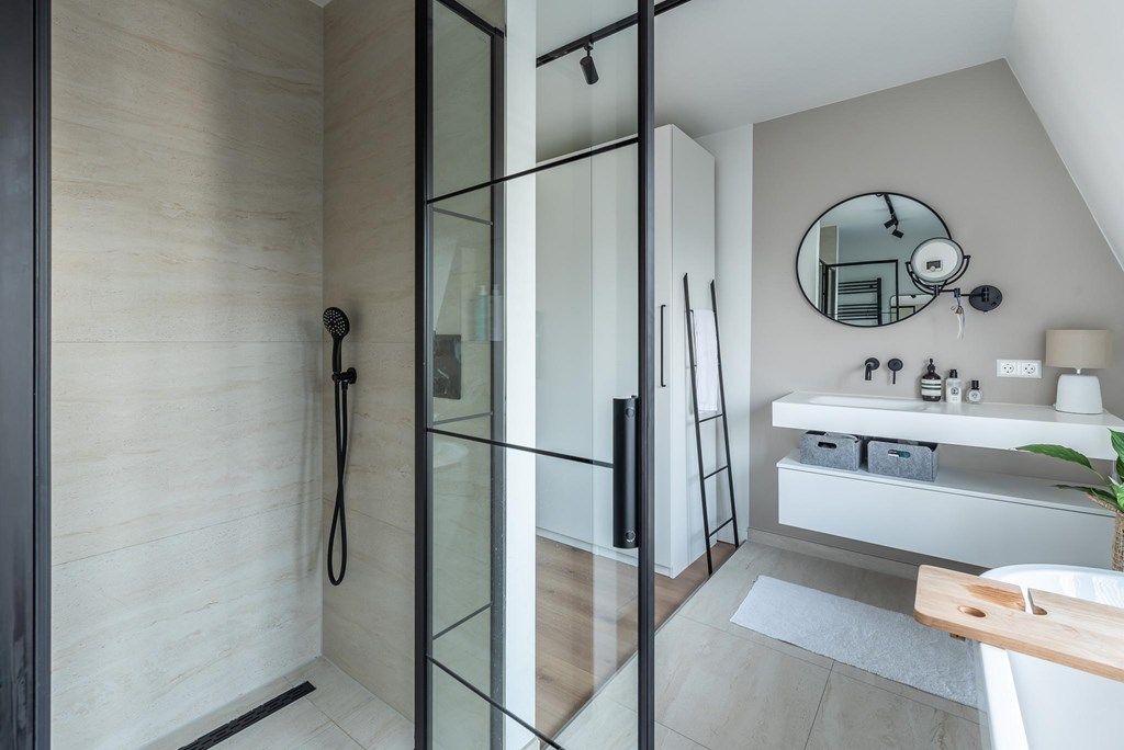 The spacious fourth bedroom is located on the top floor, which was completed in 2020. The room is located at the rear of the house and has a luxurious en-suite bathroom with bath, walk-in shower, toilet, underfloor heating and connection for washing machine and dryer.