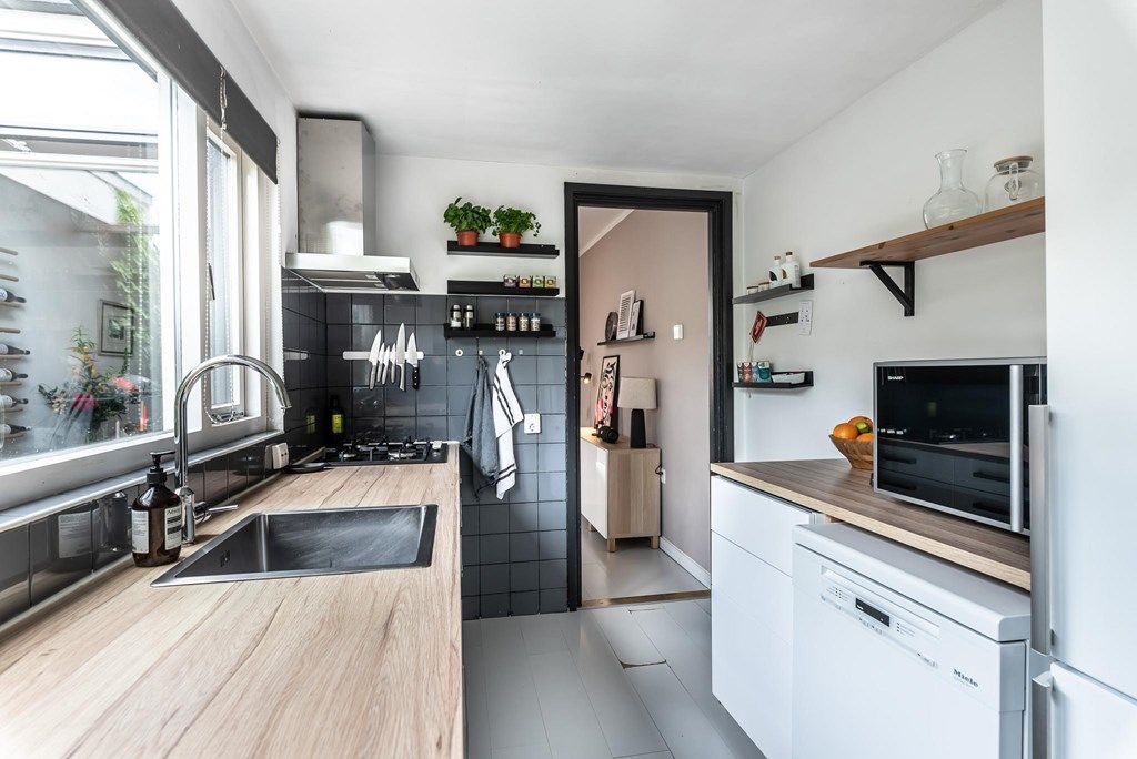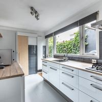 The entrance of the house opens into the hall with stairs. Through the door is the spacious, bright living room. Semi-open kitchen at the rear of the house. This is equipped with a dishwasher, gas hob and fridge freezer. Through the kitchen you can reach the deep, sunny backyard, with both morning and evening sun. There is also a wooden storage shed in this garden. At the rear of the house is the first bathroom with a walk-in shower, toilet and washbasin.