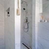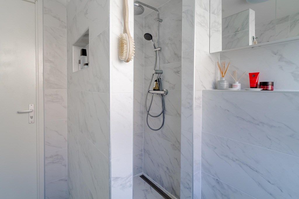 The first floor can be reached via stairs in the living room. This has two spacious bedrooms, a roof terrace and renovated bathroom. From the bedroom at the rear of the house there is access to the large roof terrace. This has an area of ??25m2 and can be decorated to your own taste. The modern and bright bathroom has a toilet, sink and spacious walk-in shower.