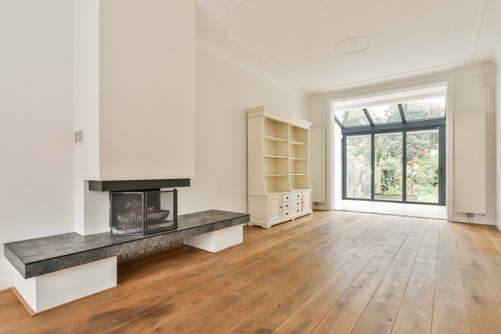 Via de entree kom je binnen in een fraaie hal met een granito vloer. Hier vind je een modern toilet. De woonkamer biedt een prachtig uitzicht op de kerk en is voorzien van een open haard, hoge plafonds en een houten vloer. De woonkamer loopt door naar de luxe serre, waarvan de pui volledig geopend kan worden. De open keuken is voorzien van moderne inbouwapparatuur en zowel de keuken als de serre hebben een stijlvolle tegelvloer. Vanuit de serre is er toegang tot de tuin, en via de tuin heb je toegang tot de garage.