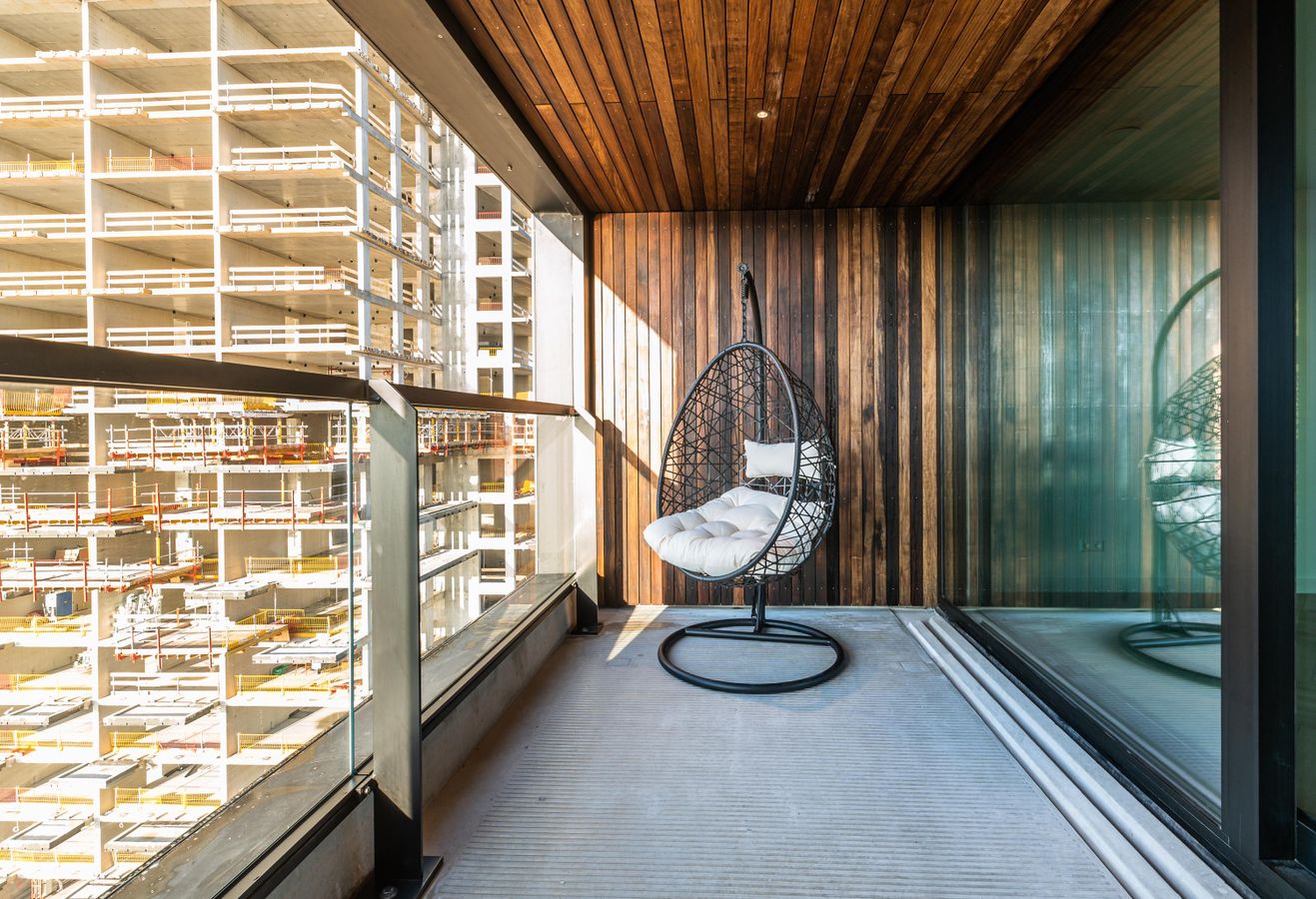De lichte woonkamer met open keuken biedt volop ruimte voor ontspanning én gezelligheid, met een praktische bar aan de keuken. De moderne, luxe keuken is voorzien van alle gemakken, waaronder een BORA-afzuigsysteem en een Quooker. Via de schuifpui bereikt u het zonnige balkon van ca. 11 m², gelegen op het zuidwesten, waar u kunt genieten van de zon én het panoramische uitzicht.