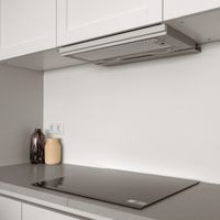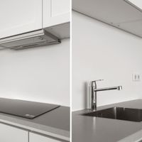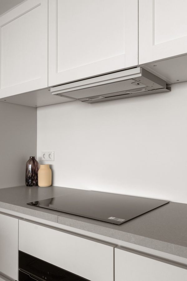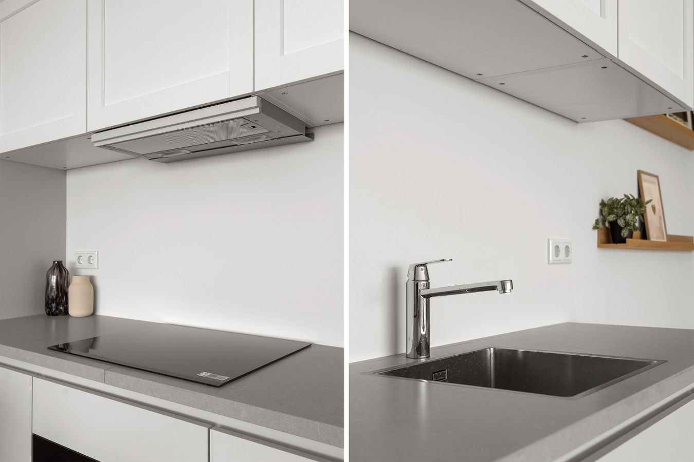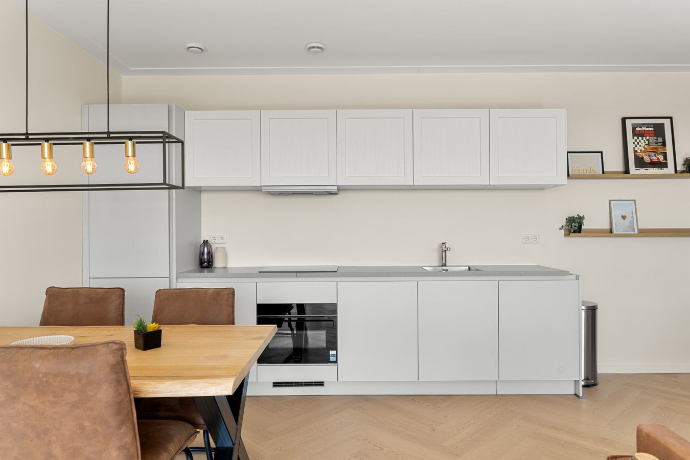 De moderne keuken is compleet uitgerust met een vaatwasser, oven, koelkast, vriezer en een 4-pits inductiekookplaat met afzuigkap.