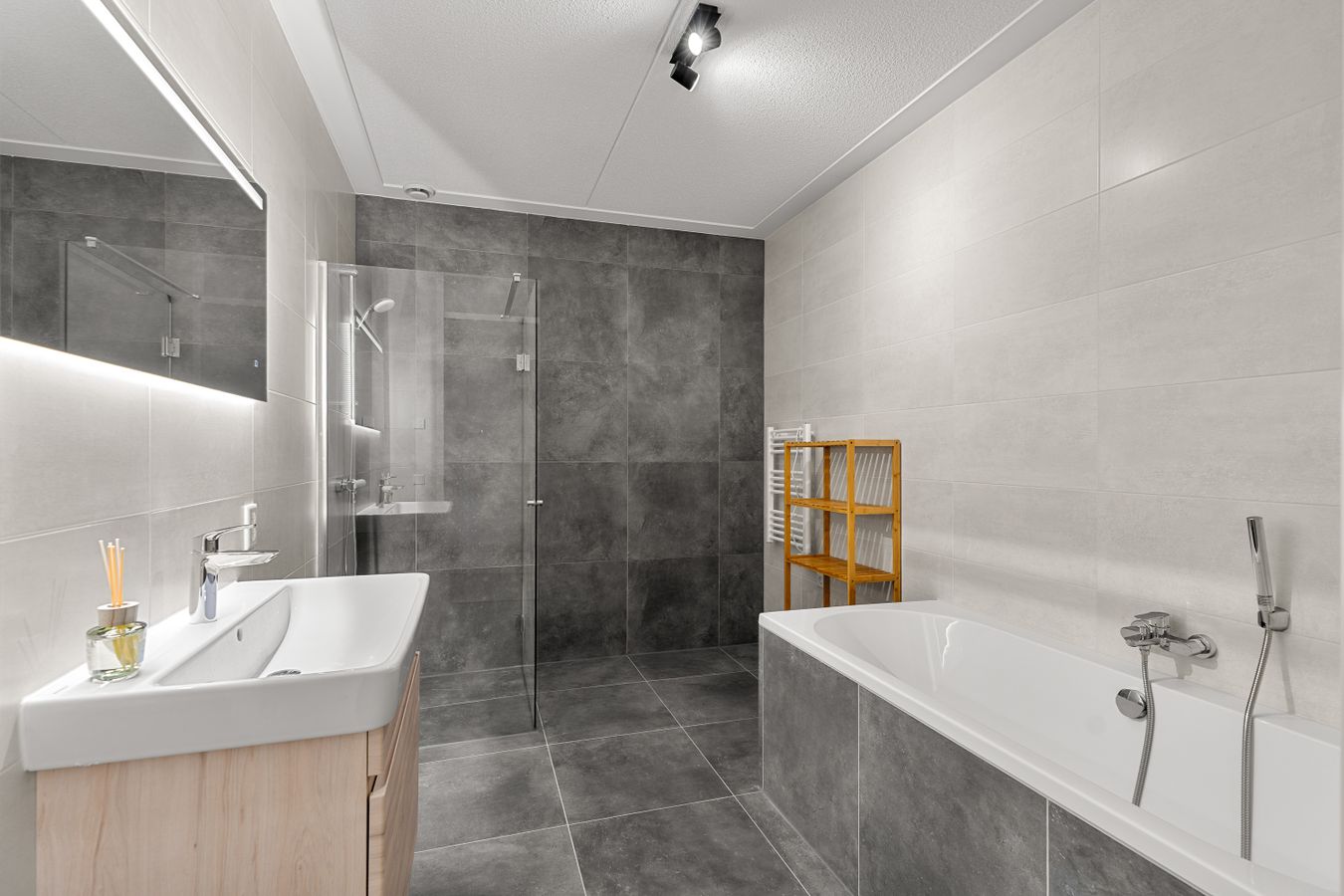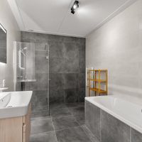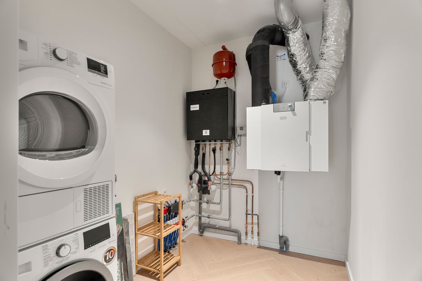 De woning is hoogwaardig afgewerkt met een stijlvolle visgraatvloer en beschikt over zowel vloerverwarming als vloerkoeling. Dankzij het energielabel A++ en de volledig gasloze uitvoering woon je hier bijzonder energiezuinig.