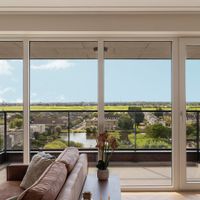 Het appartement biedt een schitterend uitzicht op de iconische Zaanse molen en combineert eigentijdse luxe met een groene, energiezuinige woonomgeving.