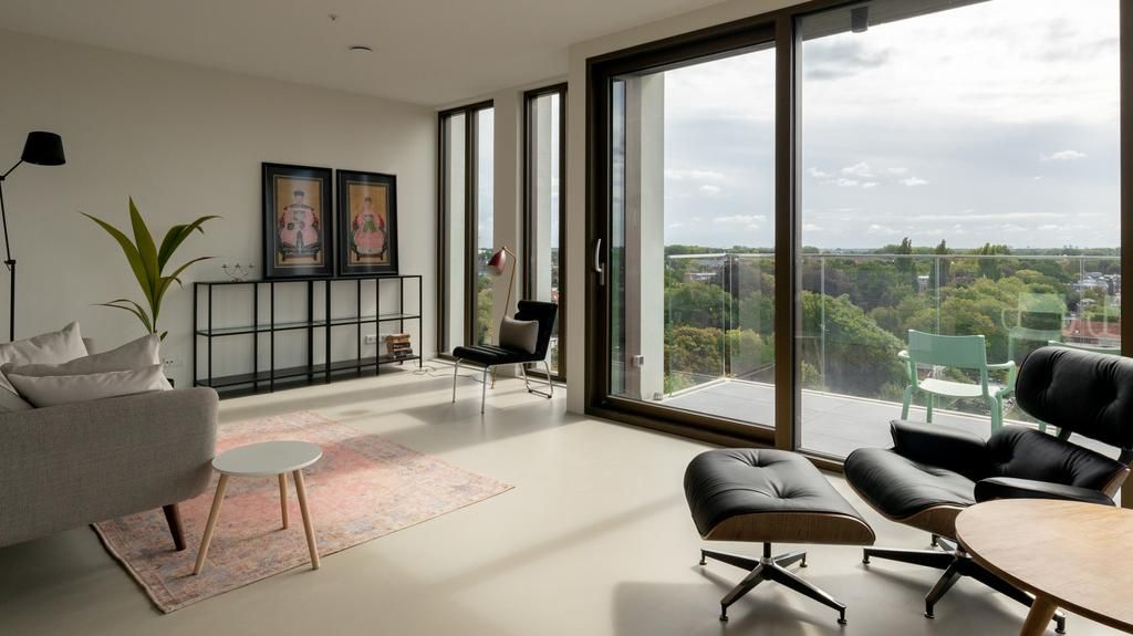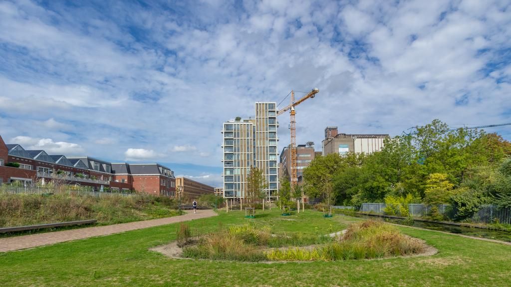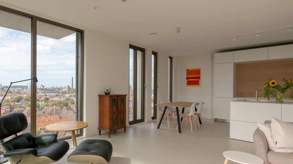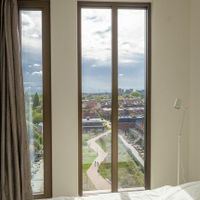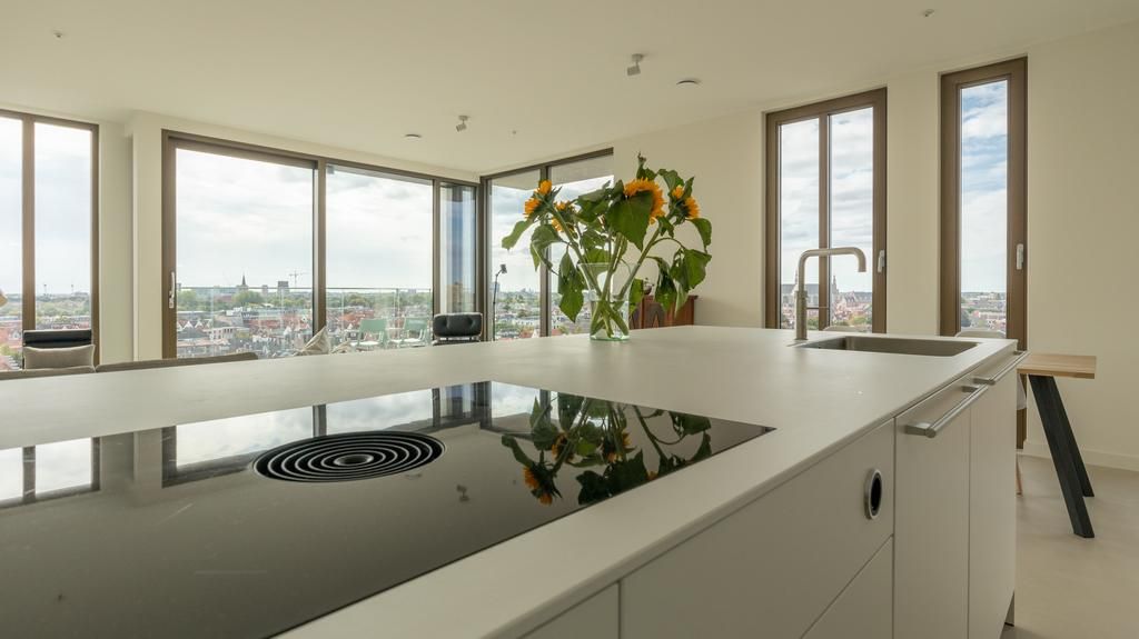 Geweldig en uniek uitzicht op de 9e verdieping van dit prestigieuze nieuwbouw pand op het terrein van de oude Meelfabriek!