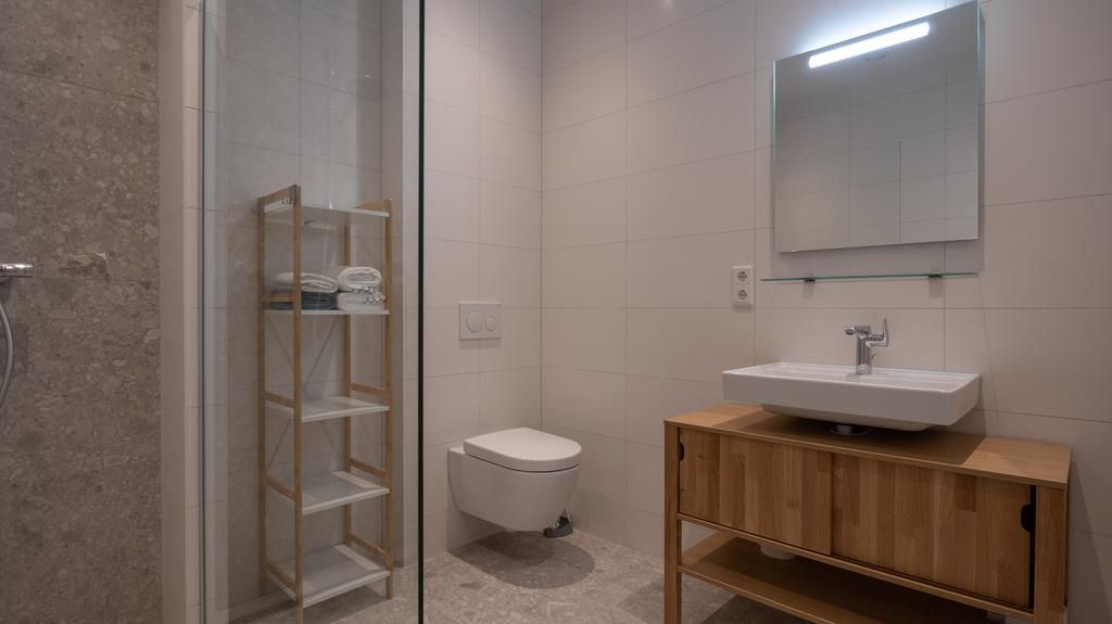 Er zijn twee slaapkamers, een technische ruimte voorzien van was- én droogmachine opstelling en de badkamer is met tweede toilet, verlichte spiegel en ruime inloopdouche.