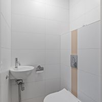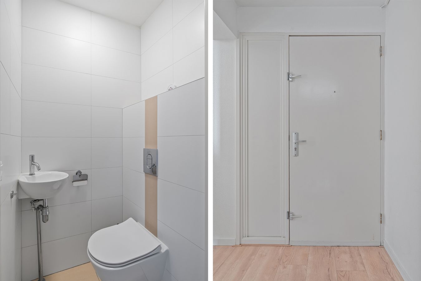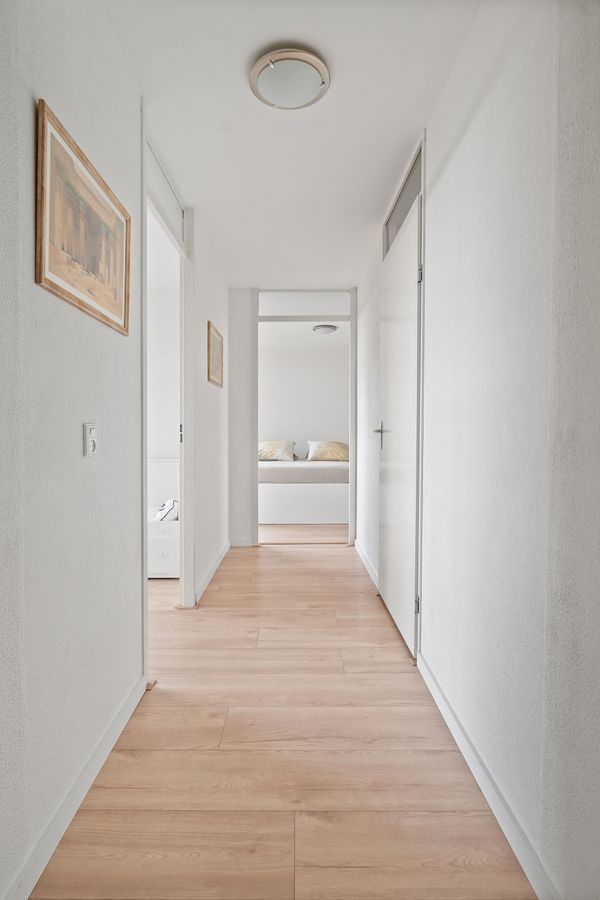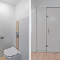 Aan de linkerzijde van het appartement bevindt zich dan nog een ruime installatieruimte, waar een wasmachine en wasdroger aangesloten kunnen worden. Bovendien beschikt het appartement over een separaat toilet in de hal.