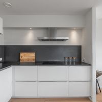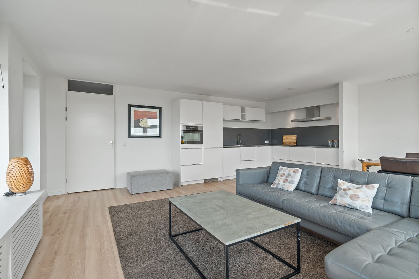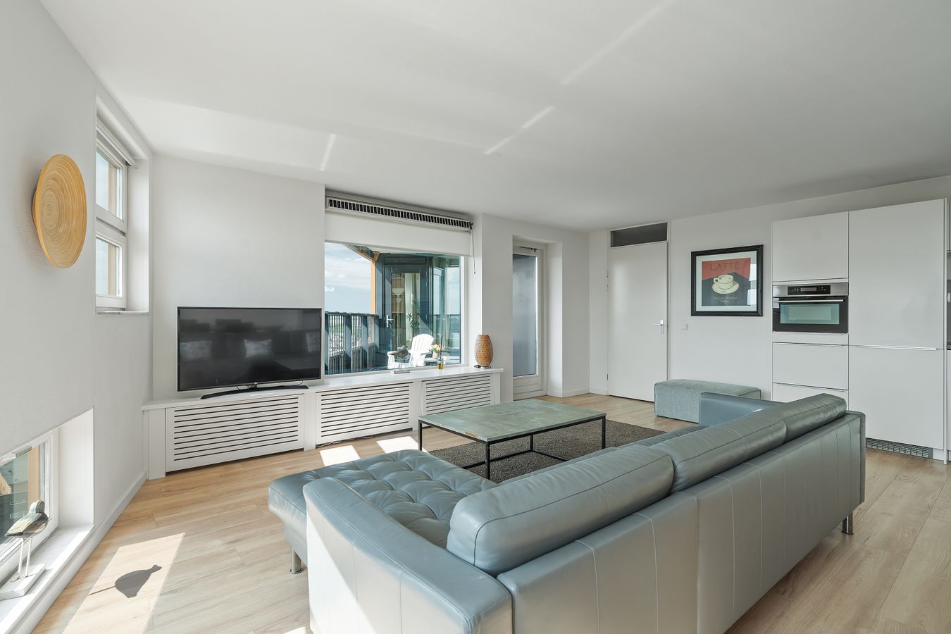 De zeer ruime woonkamer met open keuken zijn gelegen aan de zuidelijke zijde van het gebouw en bieden dus ruim daglicht. De vele ramen maken het dan ook een zeer lichte ruimte. De open keuken is in 2018 geplaatst en biedt inbouwapparatuur als een vaatwasser, combi-oven, inductiekookplaat en koel-vriescombinatie. Bovendien is er ruim voldoende opslagruimte aanwezig.