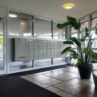 De centrale ingang van het gebouw is aan het Ecuplein. Middels twee liften is het appartement op de vijftiende verdieping te bereiken. Binnenkomst vindt plaats in de ruime hal die toegang geeft tot alle vertrekken.