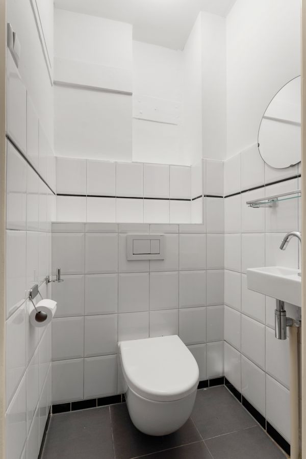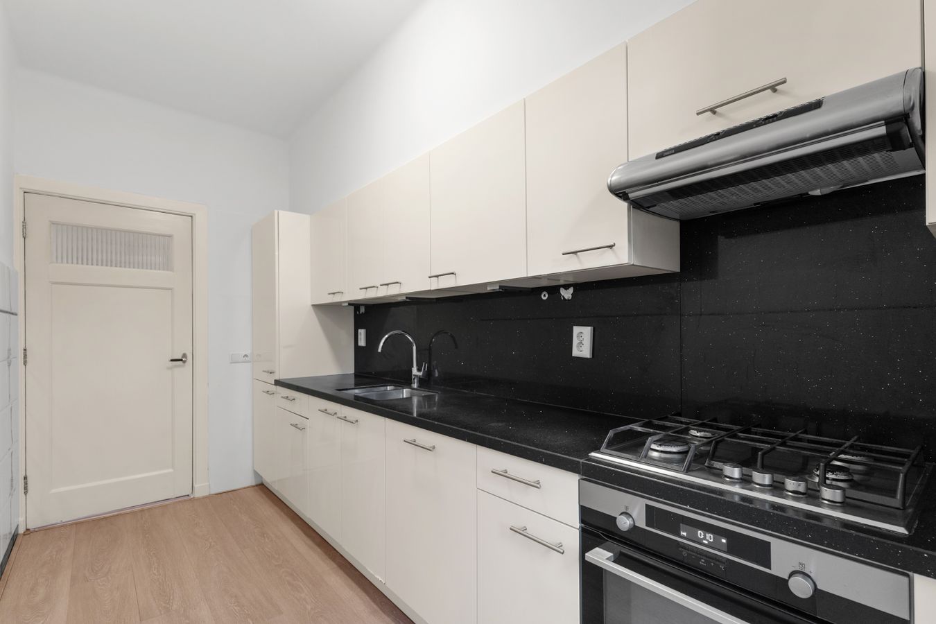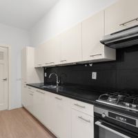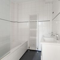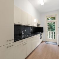De separate keuken voorzien van een inductie kookplaat, oven/magnetroncombinatie, koelkast, vriezer en vaatwasser. Bovendien bevindt zich hier een deur naar het tweede balkon, welke over de gehele breedte van zowel de keuken als de eerste slaapkamer strekt. De hoofdslaapkamer is aan de achterzijde gelegen, en heeft openslaande deuren naar het balkon. Via de slaapkamer wordt de geheel nieuwe badkamer en-suite bereikt met ruime inloopdouche en wastafelmeubel. De twee andere (kleinere) slaapkamers zijn gelegen aan de voorzijde van de woning.