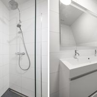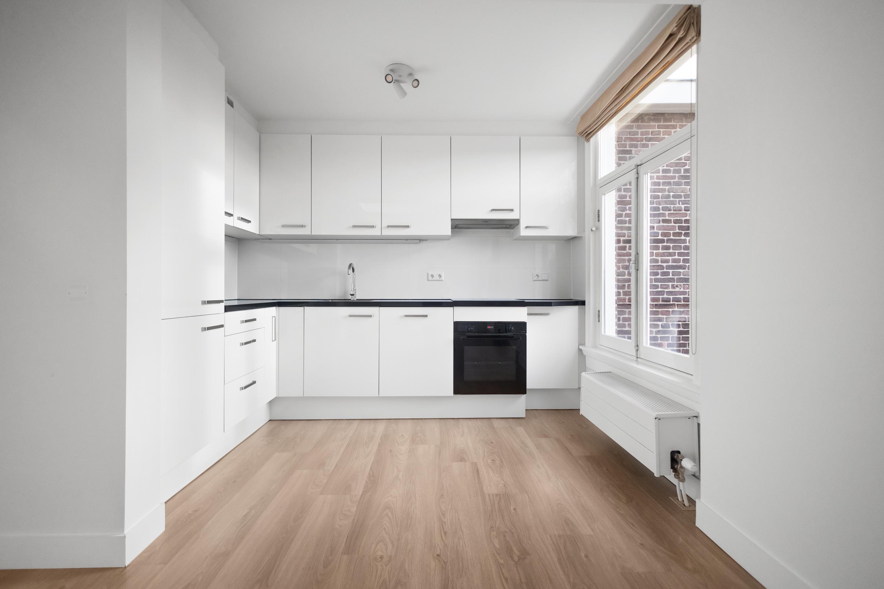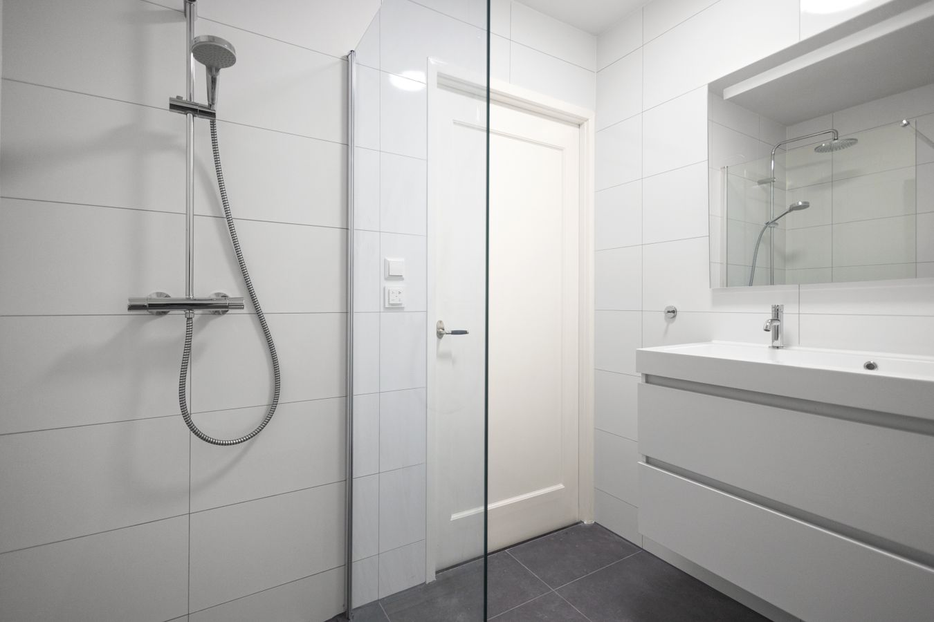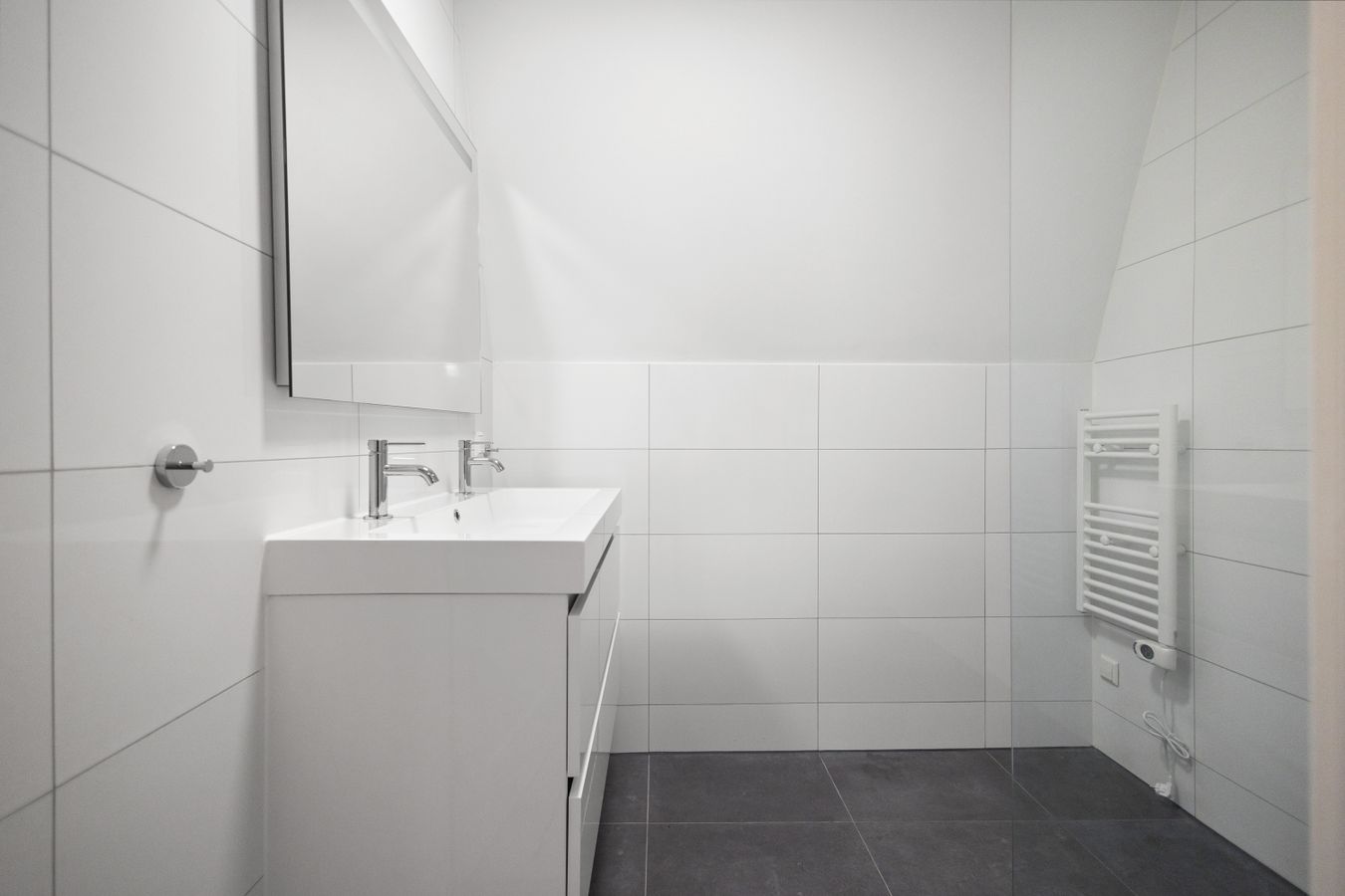 De ruime en lichte entree/hal geeft toegang tot alle vertrekken. De langwerpige woonkamer ligt aan de achterzijde van het pand en kenmerkt zich door de vele raampartijen die zorgen voor een prachtige lichtinval. Via openslaande deuren bereikt u het zeer ruime dakterras op het zuidwesten. Met uitzicht op de groene binnentuinen is dit een heerlijke plek om te genieten van de middag- en avondzon. De moderne open keuken is volledig uitgerust met een inductiekookplaat, oven-/magnetroncombinatie, koelkast, vriezer en vaatwasser. Op deze verdieping bevinden zich tevens twee slaapkamers aan de voorzijde van de woning en een ruime badkamer met inloopdouche.