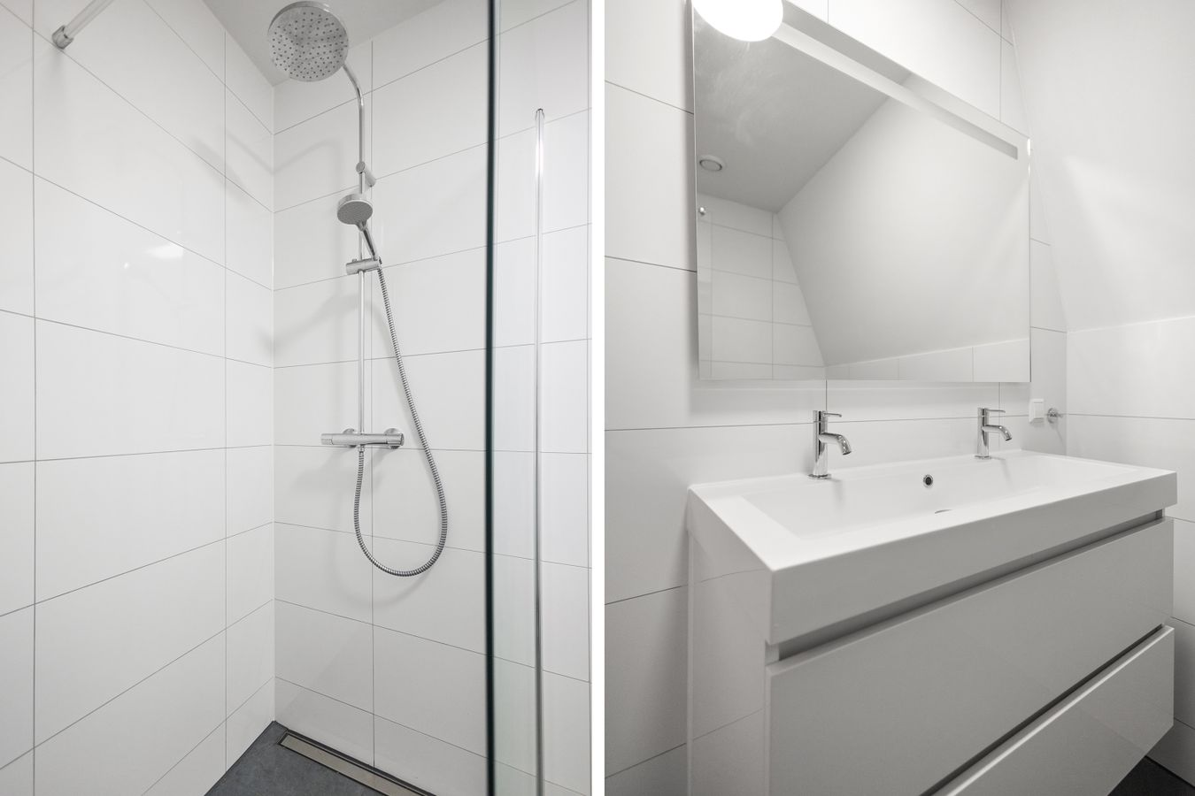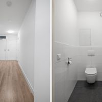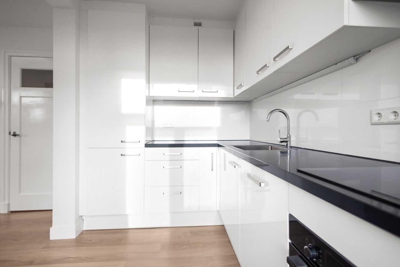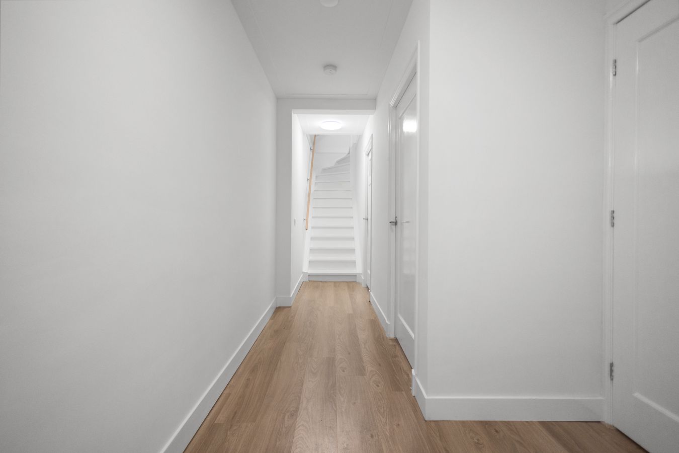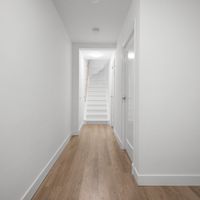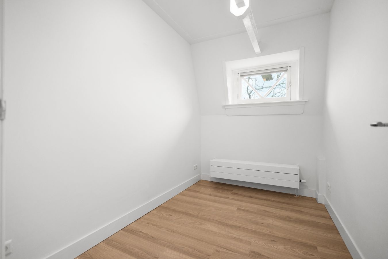 De ruime en lichte entree/hal geeft toegang tot alle vertrekken. De langwerpige woonkamer ligt aan de achterzijde van het pand en kenmerkt zich door de vele raampartijen die zorgen voor een prachtige lichtinval. Via openslaande deuren bereikt u het zeer ruime dakterras op het zuidwesten. Met uitzicht op de groene binnentuinen is dit een heerlijke plek om te genieten van de middag- en avondzon. De moderne open keuken is volledig uitgerust met een inductiekookplaat, oven-/magnetroncombinatie, koelkast, vriezer en vaatwasser. Op deze verdieping bevinden zich tevens twee slaapkamers aan de voorzijde van de woning en een ruime badkamer met inloopdouche.