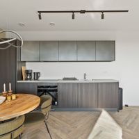De woning is strak afgewerkt en heeft een stijlvolle, luxe uitstraling mede dankzij de visgraatvloer met zowel vloerverwarming als vloerkoeling. Daarnaast is de woning energiezuinig, energielabel A++ en volledig gasloos.