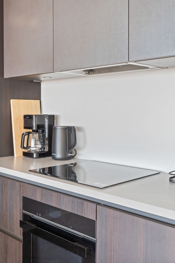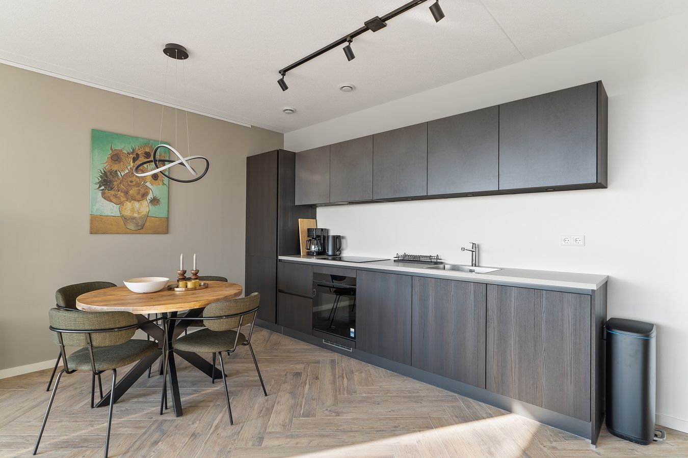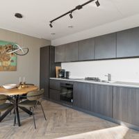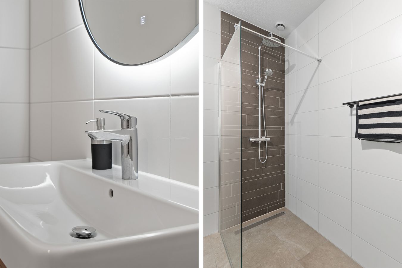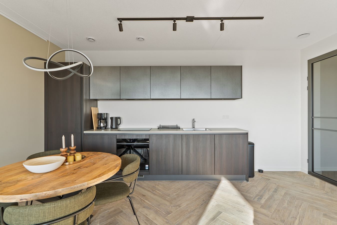De entree vindt plaats in de hal die toegang biedt tot alle vertrekken. De woonkamer met open keuken is rijk aan natuurlijk daglicht door de grote raampartijen. Door middel van openslaande deuren stap je zo het ruime terras op. Dit zorgt voor een fijne verlenging van de woonruimte en geeft de mogelijkheid om binnen en buiten met elkaar te verbinden. De moderne keuken is voorzien van alle gemakken voor een fijne kookervaring zoals, een vaatwasser, oven, koelkast, vriezer, 4-pits inductieplaat met afzuigkap.