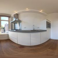 Via de statige stenen boog aan de voorzijde van het gebouw bereik je de centrale entree. Het appartement bevindt zich op de tweede verdieping en bij binnenkomst tref je direct de royale woonkamer met open keuken aan de voorzijde van de woning. Dankzij de grote raampartijen en het hoge plafond is dit een bijzonder lichte en ruimtelijke leefruimte van circa 35m². De moderne open keuken is van alle gemakken voorzien: een vaatwasser, koel-vriescombinatie, 5-pits gasfornuis met afzuigkap en een combi-oven.