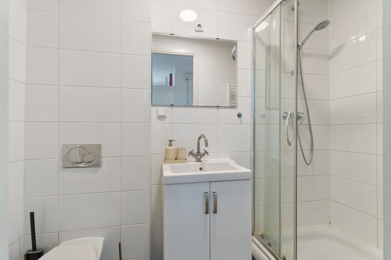 De derde kamer biedt plek voor een kinderkamer, thuiskantoor of inloopkast. Deze ruimte meet ca. 7m². Tegenover deze kamer bevindt zich de badkamer, welke beschikt over een douchecabine, wastafel en toilet. Direct naast de badkamer gelegen is een ruimte waar de wasmachine aangesloten kan worden en nog extra spullen opgeborgen kunnen worden.