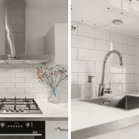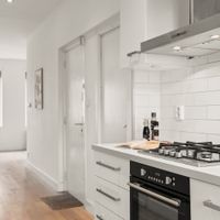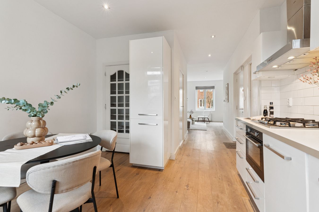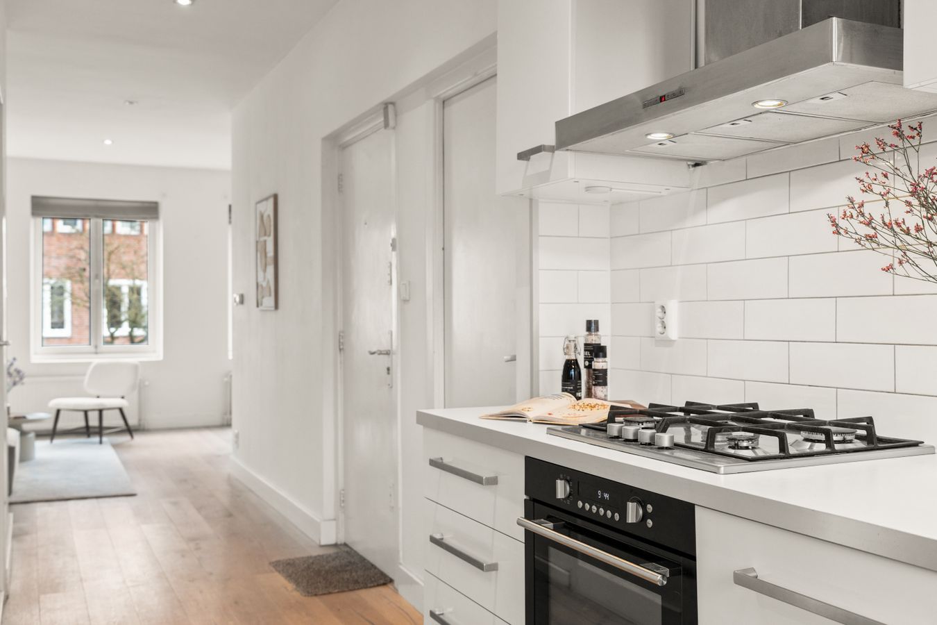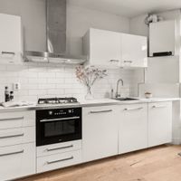 Aan de achterzijde bevindt zich de woonkeuken met open keuken, welke is voorzien van diverse inbouwapparatuur, waaronder een combi-oven/magnetron, kookplaat, koelkast, vriezer en vaatwasser. Vanuit de keuken is er toegang tot het balkon op het zuidwesten, waar je heerlijk van de zon kunt genieten.