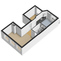 De slaapkamer is eveneens aan de achterzijde gelegen. Zowel de woonkamer, keuken als slaapkamer zijn voorzien van een mooie houten vloer.