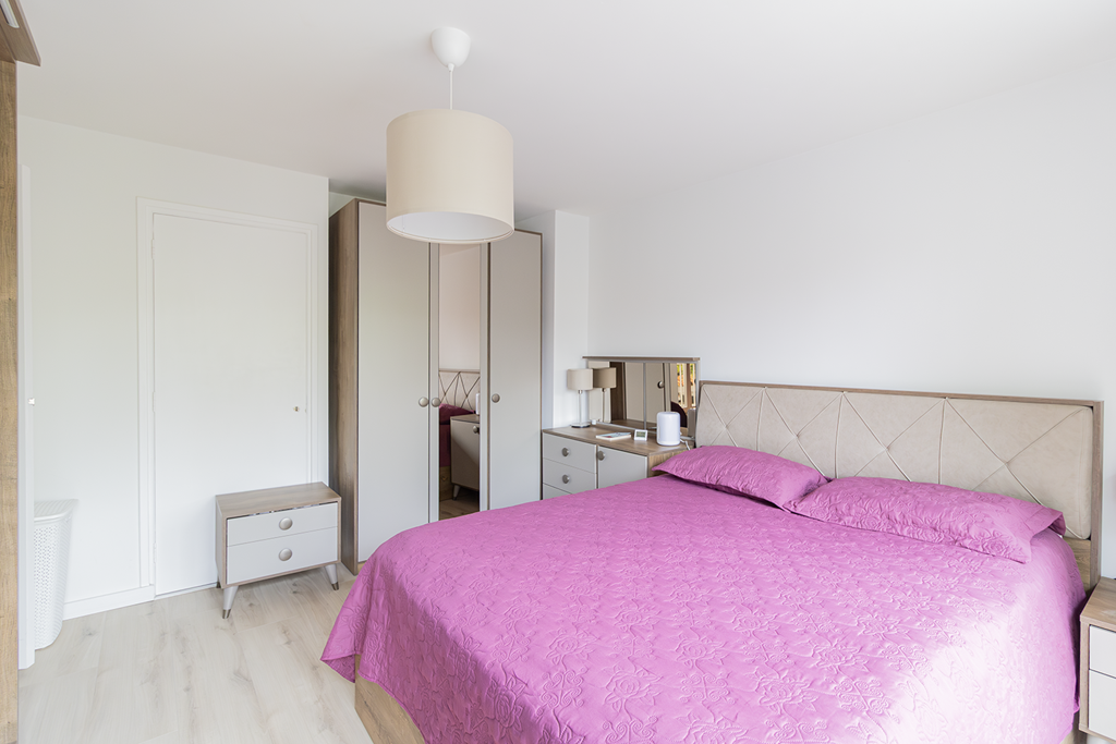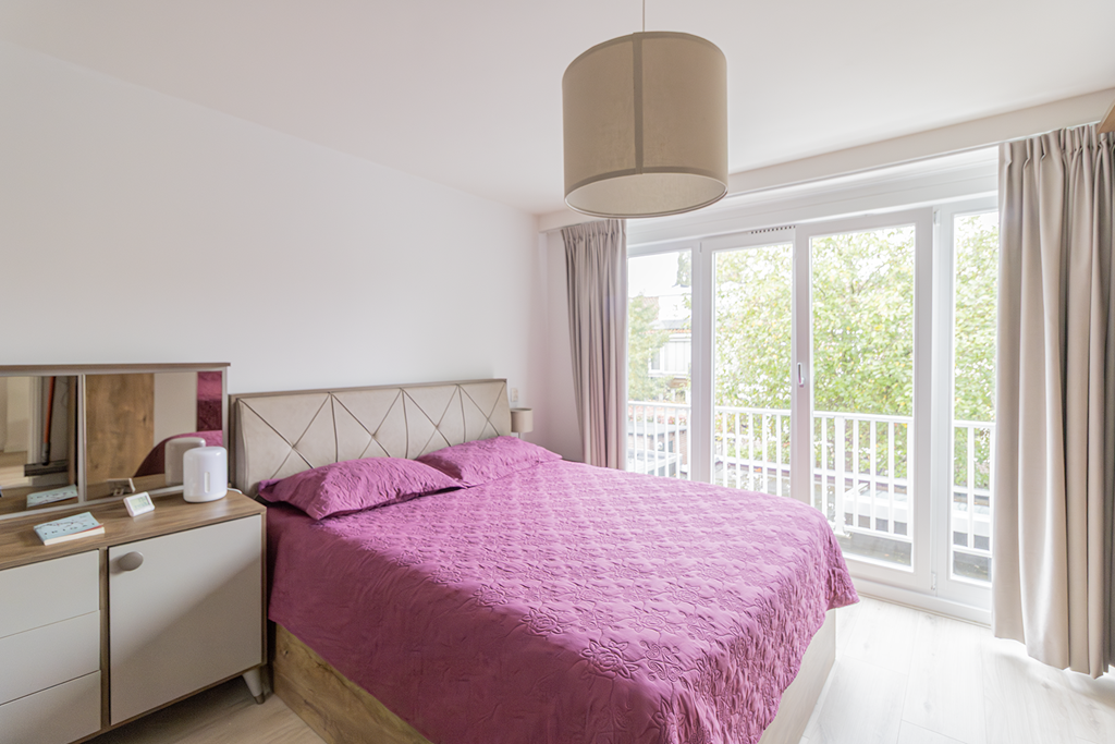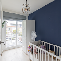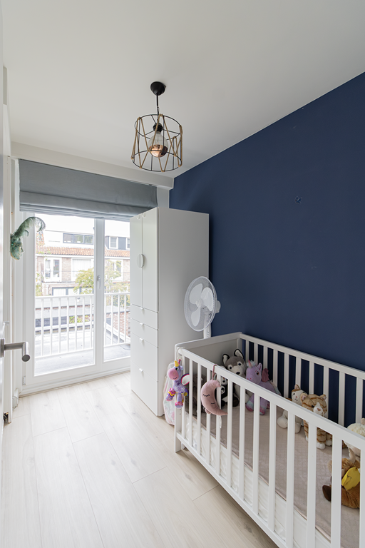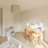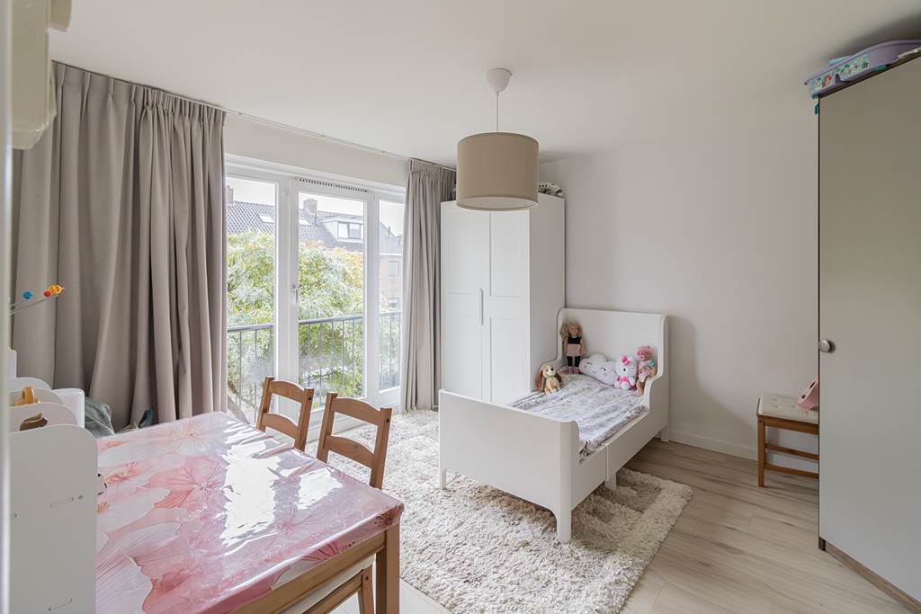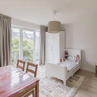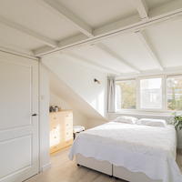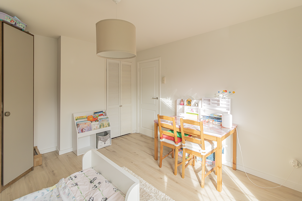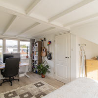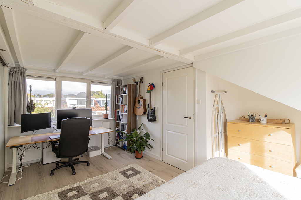 Op de tweede verdieping bevindt zich nog een ruime slaapkamer, voorzien van veel lichtinval. De kamer is ingericht met een bureau en een tweepersoonsbed, wat deze ruimte uitermate geschikt maakt voor thuiswerken, studeren, het uitoefenen van een hobby of als logeerkamer.