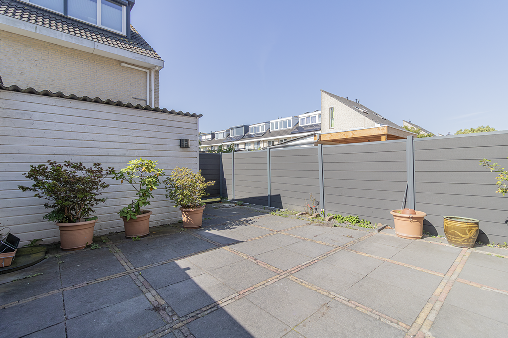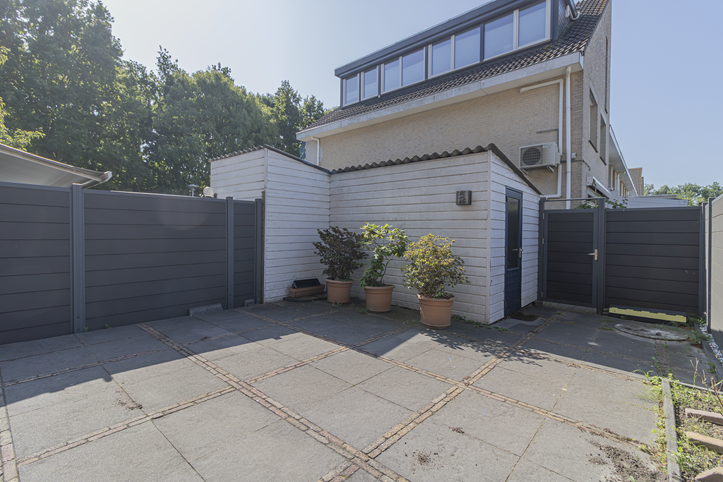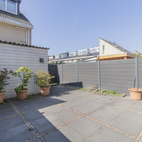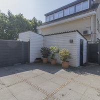 zonnescherm aan de achtergevel tezamen met de enorme plafondhoogte maakt de woonkamer op warme zomerdagen extra behaaglijk. In de achtertuin bevindt zich een stenen (fietsen-)berging van ca. 8 m2 voorzien van elektriciteit. Middels het achterom is de achtertuin en berging praktisch bereikbaar.