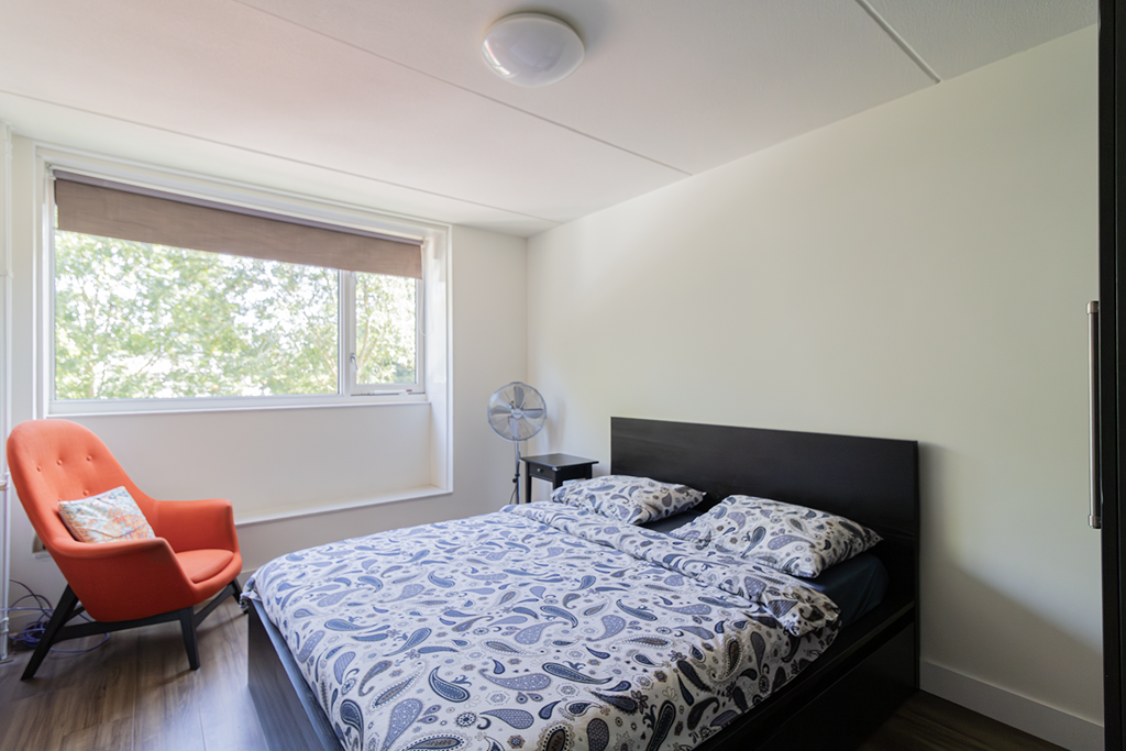 Trapopgang vanaf de begane grond naar speelse verdieping door splitlevel indeling. Aan de voor- en achterzijde totaal twee ruime slaapkamers waarvan één