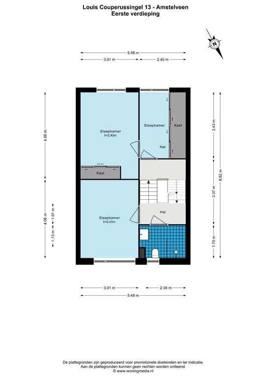 De indeling leent zich om de walk-in-closet aan te passen naar derde (kinder-)slaapkamer.