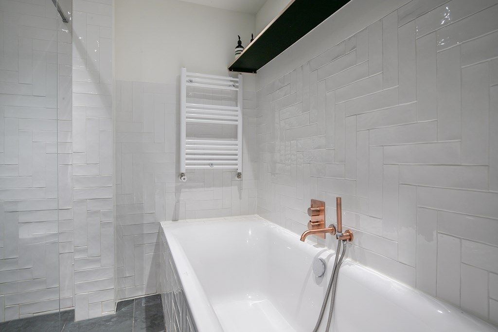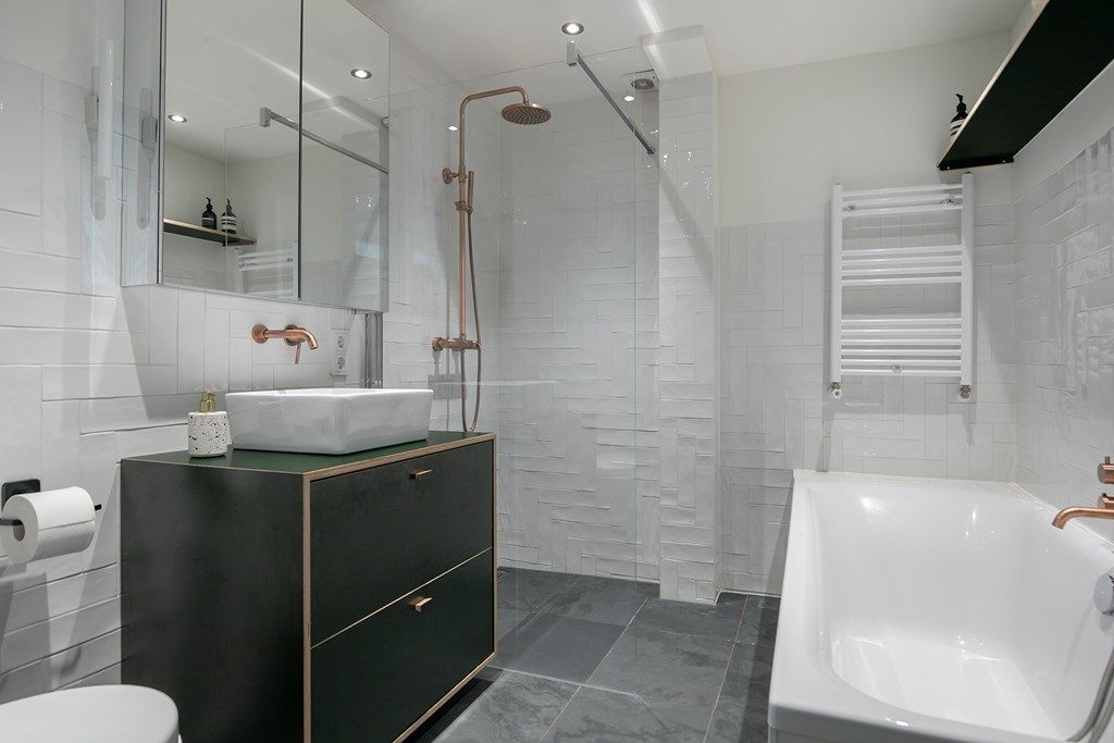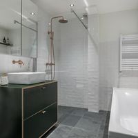 De tweede etage beschikt over 3 slaapkamers en een moderne badkamer uitgevoerd met bad, inloopdouche, wastafel met meubel, toilet en handdoekenradiator.