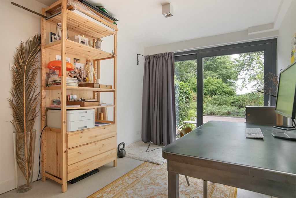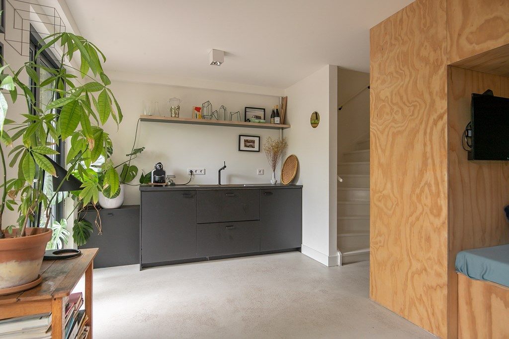 Vanaf de entree zijn alle ruimtes op de begane grond bereikbaar. Hier is onder meer een toilet en een wasmachine aansluiting aanwezig. De ruimte aan de voorzijde van de woning leent zich uitstekend voor een thuiswerkende situatie of voor opbergruimte van de fietsen. De ruimte aan de achterzijde van de woning beschikt over een klein keukenblok en een leuke zitplek om even tot rust te komen. Aan de voorzijde van de woning is er een parkeerplek aanwezig en de achterzijde van de woning ligt op het westen waardoor er in de tuin heerlijk van de middag en avondzon genoten kan worden. De begane grond is voorzien van vloerverwarming.
